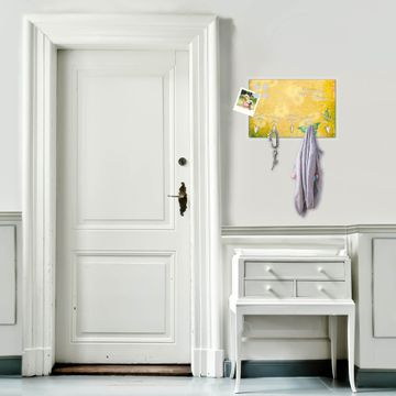 FUNKTION: Mit dem banjado Schlüsselbrett Muster Sommer hat Ihre Suche nach dem Schlüsselbund endlich ein Ende! Auf gesamt 5 Haken finden auch die größten Schlüssel ihren Platz. Durch den farbenfrohen Motivdruck ist das Schlüsselboard ein Blickfang in jeder Wohnung. DESIGN: Die Schlüsselleiste mit Motiv Muster Sommer hat ein sehr ansprechendes und ausgefallenes Design. Das Glasboard besteht aus einer gehärteten Glasscheibe mit dem Motiv Ihrer Wahl. Ihre neue Schlüsselaufbewahrung ist funktionell und ein optisches Highlight. DETAILS: Das Schlüsselbrett ist 30 x 20 x 4,5 CM (BxHxT). Das ganze Board besteht aus gehärtetem Sicherheitsglas, die Haken zur Selbstmontage präsentieren sich in Edelstahl-Optik. Für einen sicheren Halt erfolgt die Aufhängung an 2 vorgefertigten Haltern an der Rückseite. Das Montagematerial fügen wir bei. NUTZEN: Hier findet alles seinen Platz: Schlüsselbunde, Geschirrtücher, Hundeleinen oder Kinderjacken. Das Glas kann mit Kreidestiften bzw. Whiteboard-Marker beschrieben werden, mit extrastarken Neodym-Magneten können Sie auch Notizen anheften. BANJADO: Wir sind ein kleines Team aus dem Herzen von Sachsen und fertigen Ihre neue Schlüsselaufbewahrung von Hand an. Sie erhalten Handarbeit und keine preiswerte Importware. Wir hoffen, dass Ihnen unsere Idee zusagt, herzlichst das banjado Team.