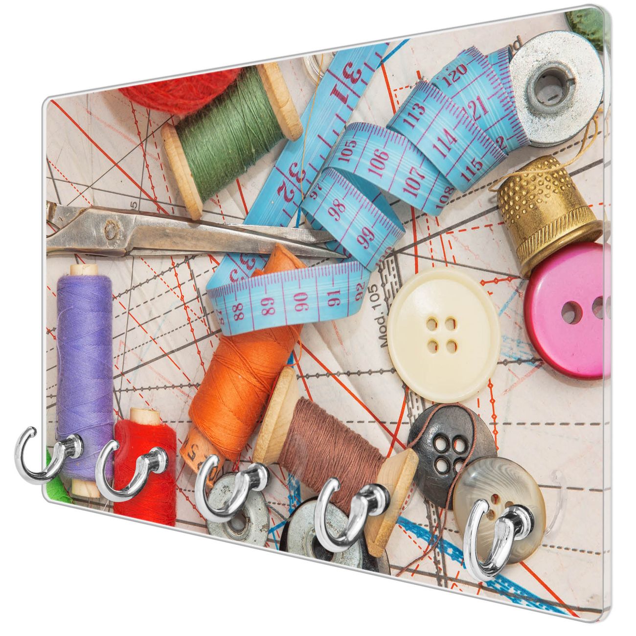 Glas Schlüsselbrett mit 5 Haken Nähen