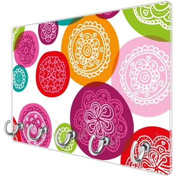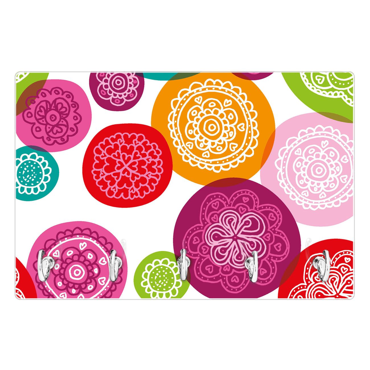 Glas Schlüsselbrett mit 5 Haken Naive Blüten