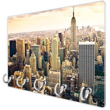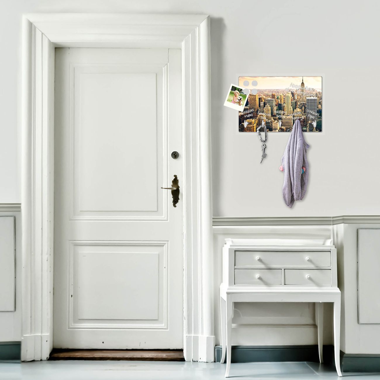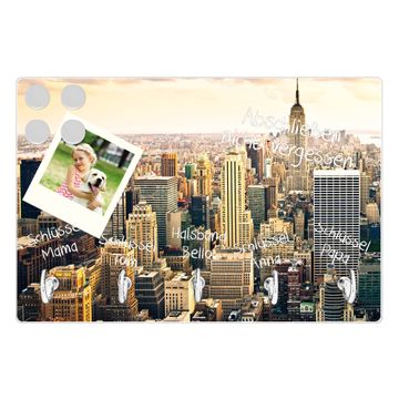 FUNKTION: Mit dem banjado Schlüsselbrett New York City hat Ihre Suche nach dem Schlüsselbund endlich ein Ende! Auf gesamt 5 Haken finden auch die größten Schlüssel ihren Platz. Durch den farbenfrohen Motivdruck ist das Schlüsselboard ein Blickfang in jeder Wohnung. DESIGN: Die Schlüsselleiste mit Motiv New York City hat ein sehr ansprechendes und ausgefallenes Design. Das Glasboard besteht aus einer gehärteten Glasscheibe mit dem Motiv Ihrer Wahl. Ihre neue Schlüsselaufbewahrung ist funktionell und ein optisches Highlight. DETAILS: Das Schlüsselbrett ist 30 x 20 x 4,5 CM (BxHxT). Das ganze Board besteht aus gehärtetem Sicherheitsglas, die Haken zur Selbstmontage präsentieren sich in Edelstahl-Optik. Für einen sicheren Halt erfolgt die Aufhängung an 2 vorgefertigten Haltern an der Rückseite. Das Montagematerial fügen wir bei. NUTZEN: Hier findet alles seinen Platz: Schlüsselbunde, Geschirrtücher, Hundeleinen oder Kinderjacken. Das Glas kann mit Kreidestiften bzw. Whiteboard-Marker beschrieben werden, mit extrastarken Neodym-Magneten können Sie auch Notizen anheften. BANJADO: Wir sind ein kleines Team aus dem Herzen von Sachsen und fertigen Ihre neue Schlüsselaufbewahrung von Hand an. Sie erhalten Handarbeit und keine preiswerte Importware. Wir hoffen, dass Ihnen unsere Idee zusagt, herzlichst das banjado Team.