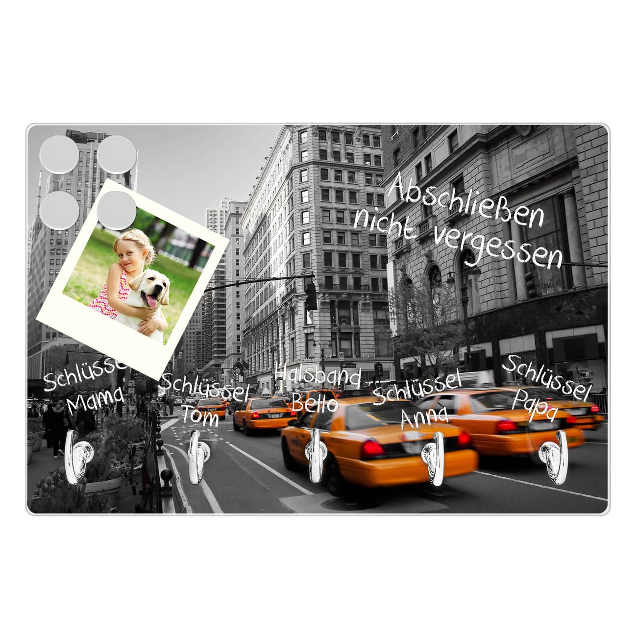 Glas Schlüsselbrett mit 5 Haken New York Taxi