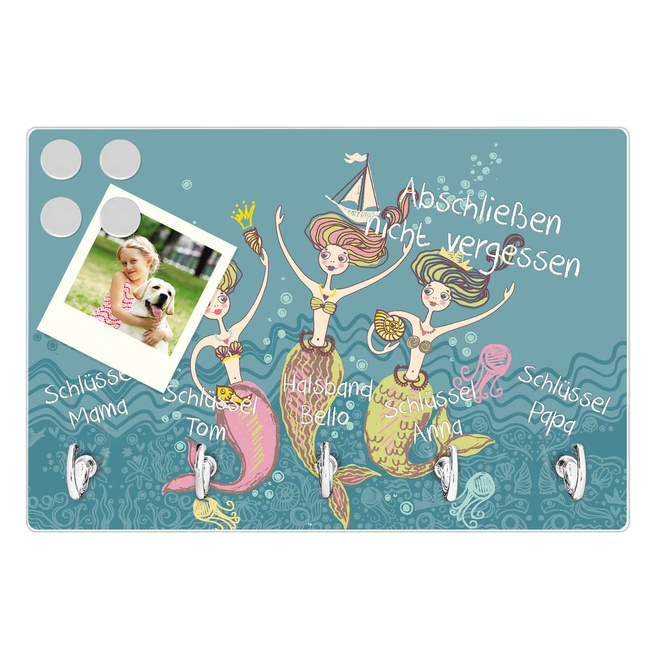 Glas Schlüsselbrett mit 5 Haken Nixen
