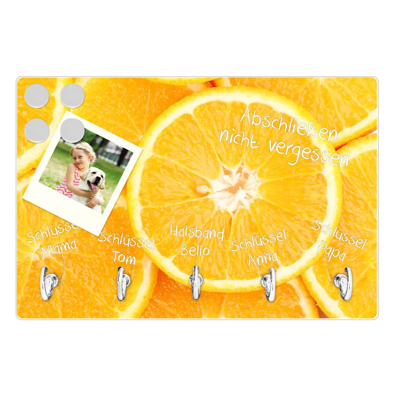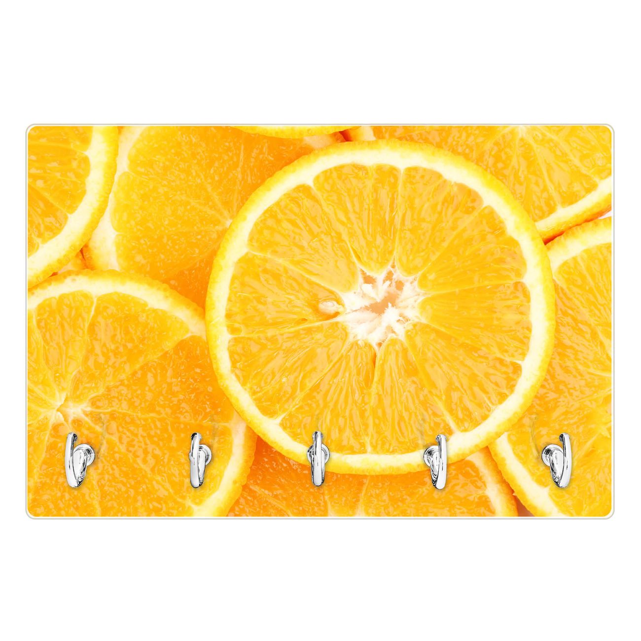Glas Schlüsselbrett mit 5 Haken Orangenscheiben