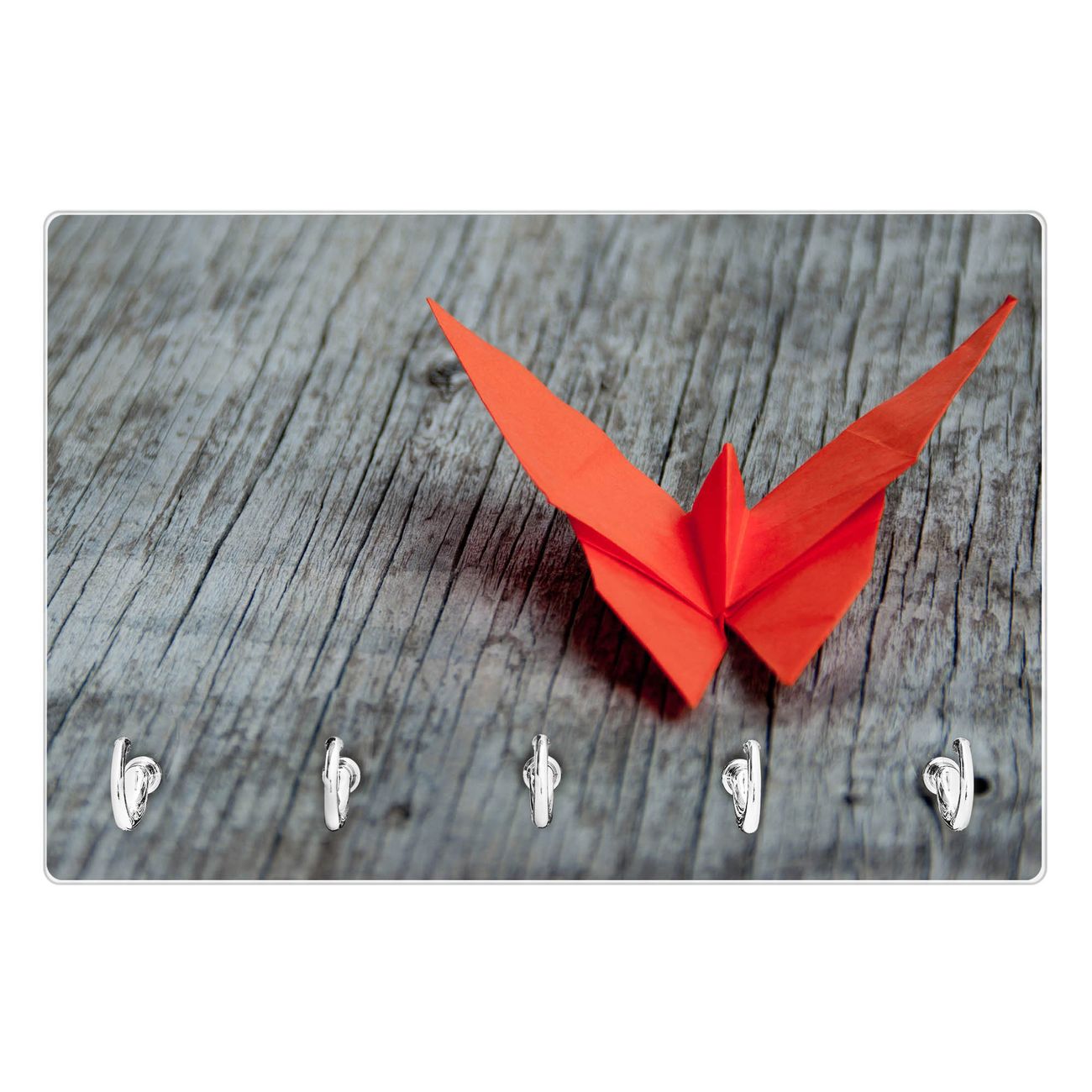 Glas Schlüsselbrett mit 5 Haken Origami Schmetterling