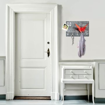 FUNKTION: Mit dem banjado Schlüsselbrett Origami Schmetterling hat Ihre Suche nach dem Schlüsselbund endlich ein Ende! Auf gesamt 5 Haken finden auch die größten Schlüssel ihren Platz. Durch den farbenfrohen Motivdruck ist das Schlüsselboard ein Blickfang in jeder Wohnung. DESIGN: Die Schlüsselleiste mit Motiv Origami Schmetterling hat ein sehr ansprechendes und ausgefallenes Design. Das Glasboard besteht aus einer gehärteten Glasscheibe mit dem Motiv Ihrer Wahl. Ihre neue Schlüsselaufbewahrung ist funktionell und ein optisches Highlight. DETAILS: Das Schlüsselbrett ist 30 x 20 x 4,5 CM (BxHxT). Das ganze Board besteht aus gehärtetem Sicherheitsglas, die Haken zur Selbstmontage präsentieren sich in Edelstahl-Optik. Für einen sicheren Halt erfolgt die Aufhängung an 2 vorgefertigten Haltern an der Rückseite. Das Montagematerial fügen wir bei. NUTZEN: Hier findet alles seinen Platz: Schlüsselbunde, Geschirrtücher, Hundeleinen oder Kinderjacken. Das Glas kann mit Kreidestiften bzw. Whiteboard-Marker beschrieben werden, mit extrastarken Neodym-Magneten können Sie auch Notizen anheften. BANJADO: Wir sind ein kleines Team aus dem Herzen von Sachsen und fertigen Ihre neue Schlüsselaufbewahrung von Hand an. Sie erhalten Handarbeit und keine preiswerte Importware. Wir hoffen, dass Ihnen unsere Idee zusagt, herzlichst das banjado Team.