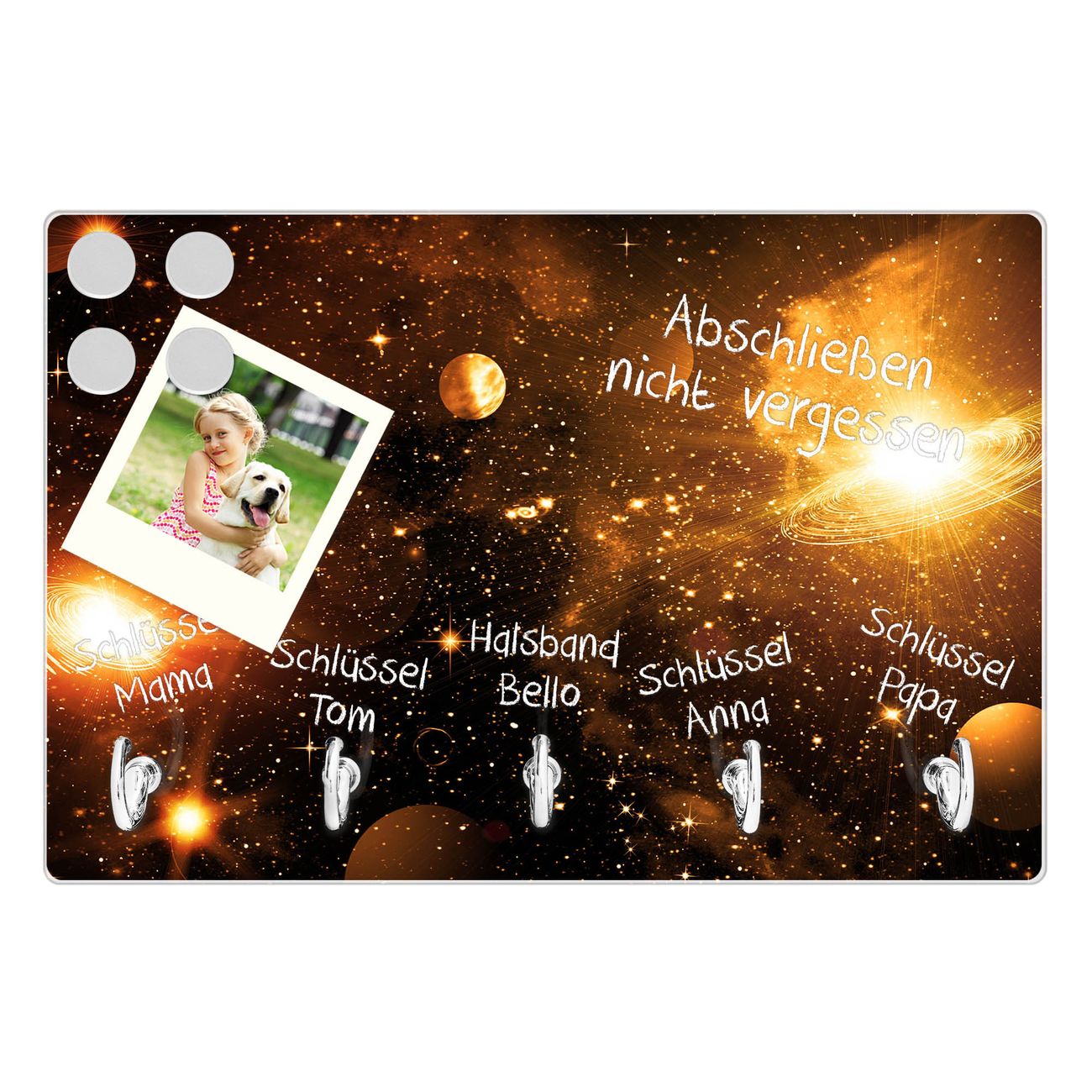 Glas Schlüsselbrett mit 5 Haken Outer Space