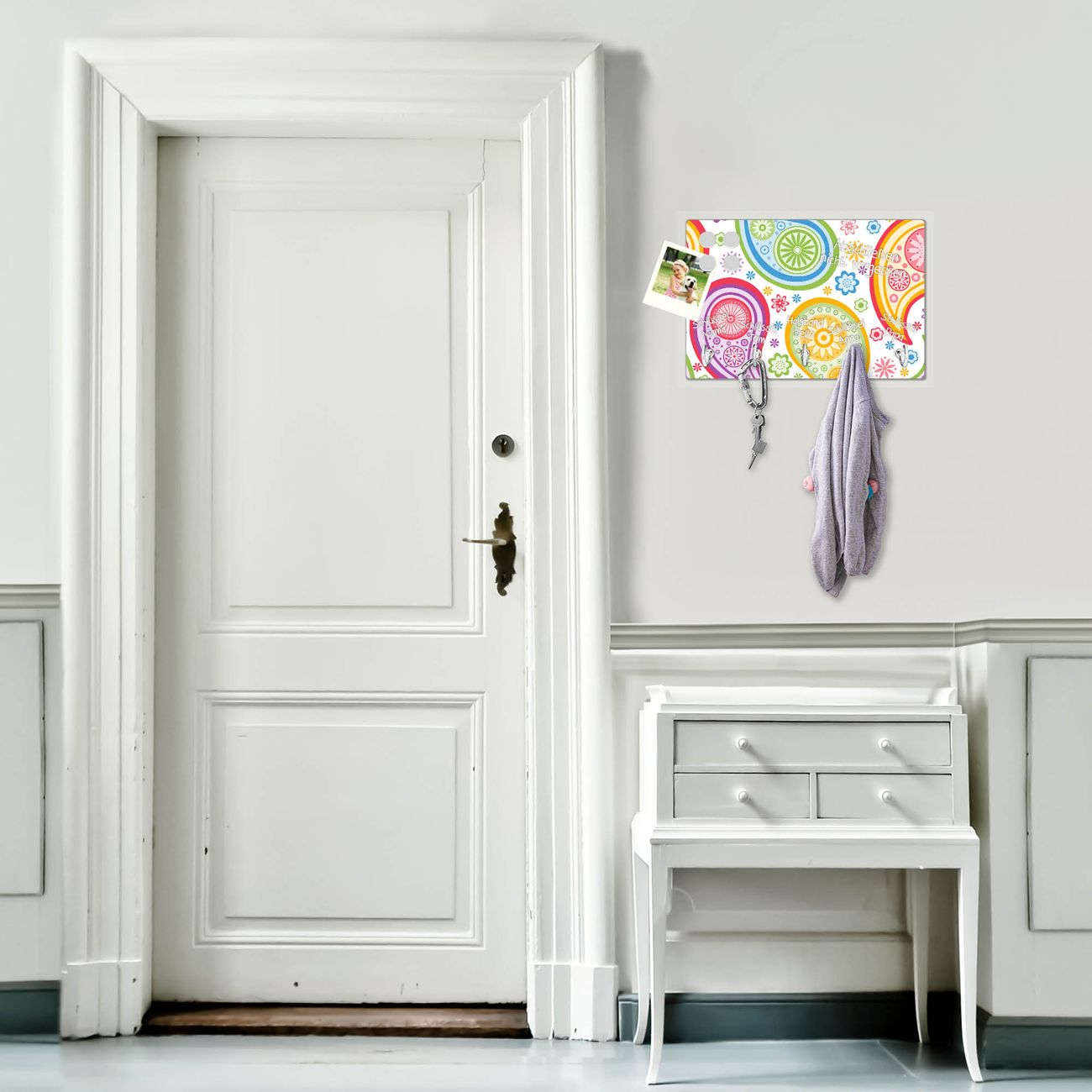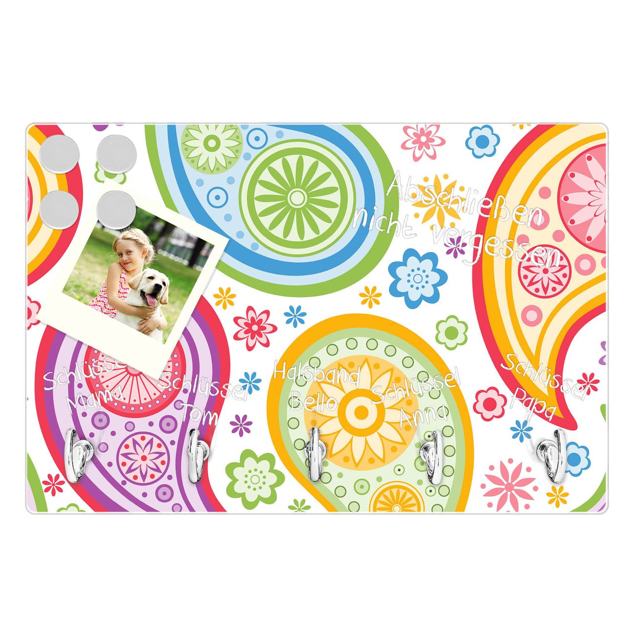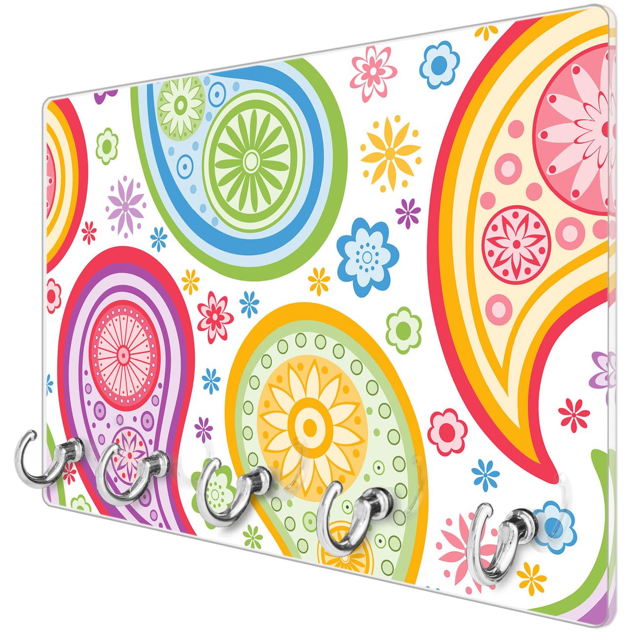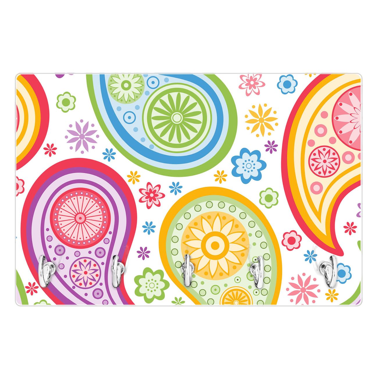 Glas Schlüsselbrett mit 5 Haken Paisley bunt