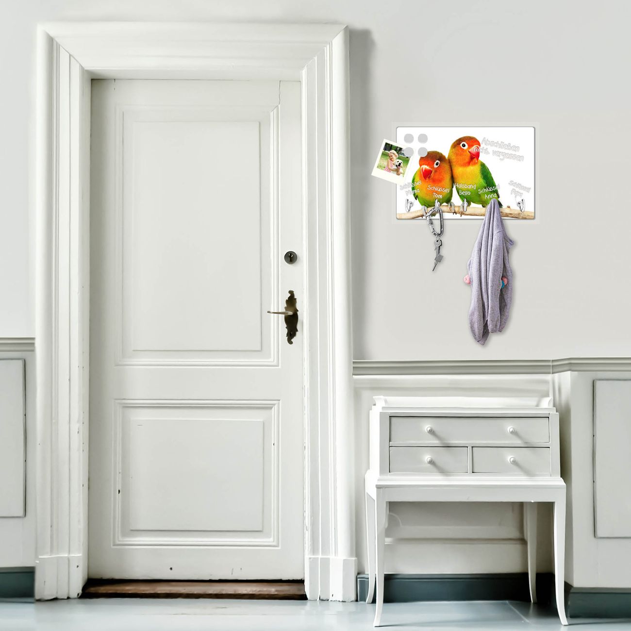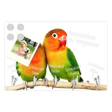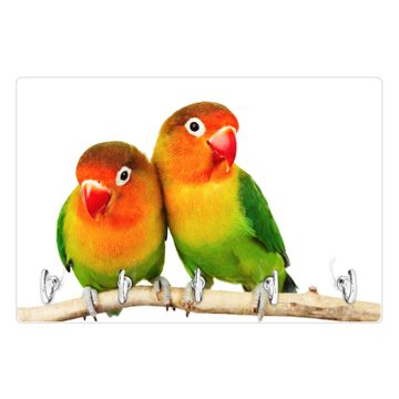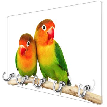 Glas Schlüsselbrett mit 5 Haken Papageien