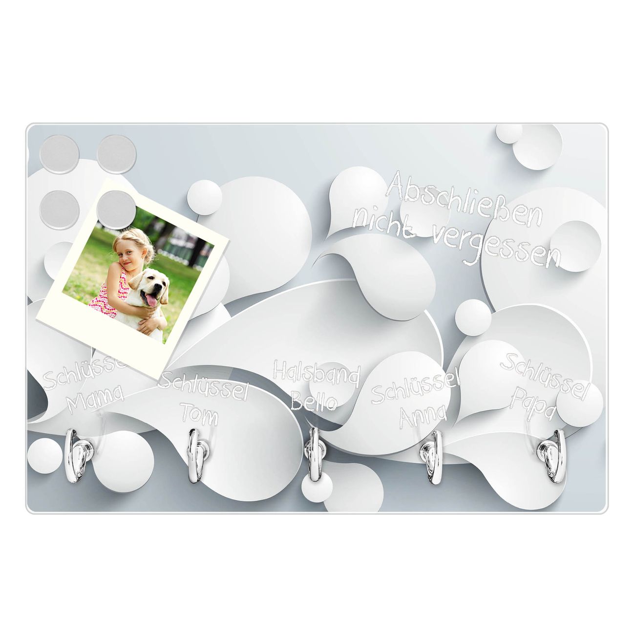 Glas Schlüsselbrett mit 5 Haken Papiertropfen