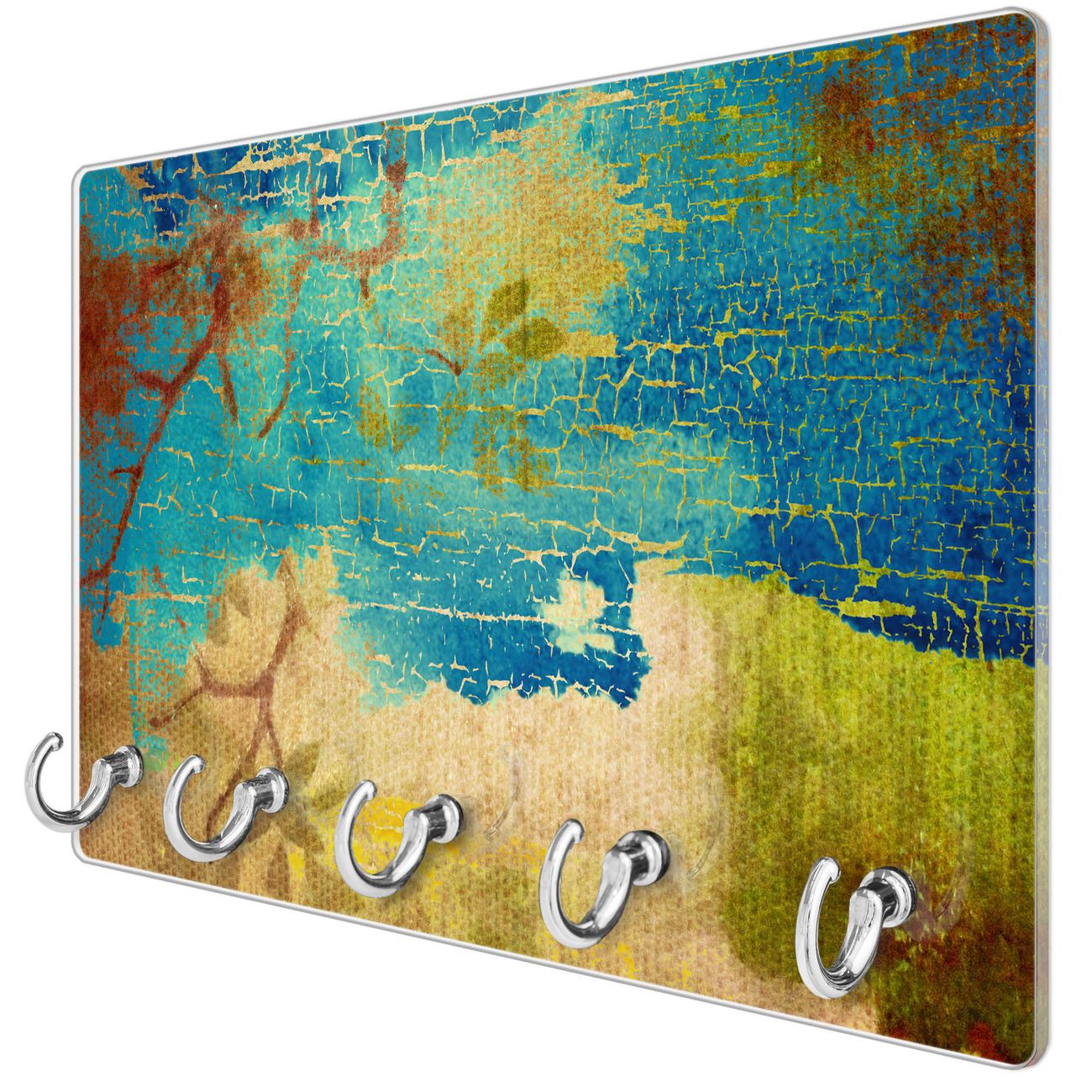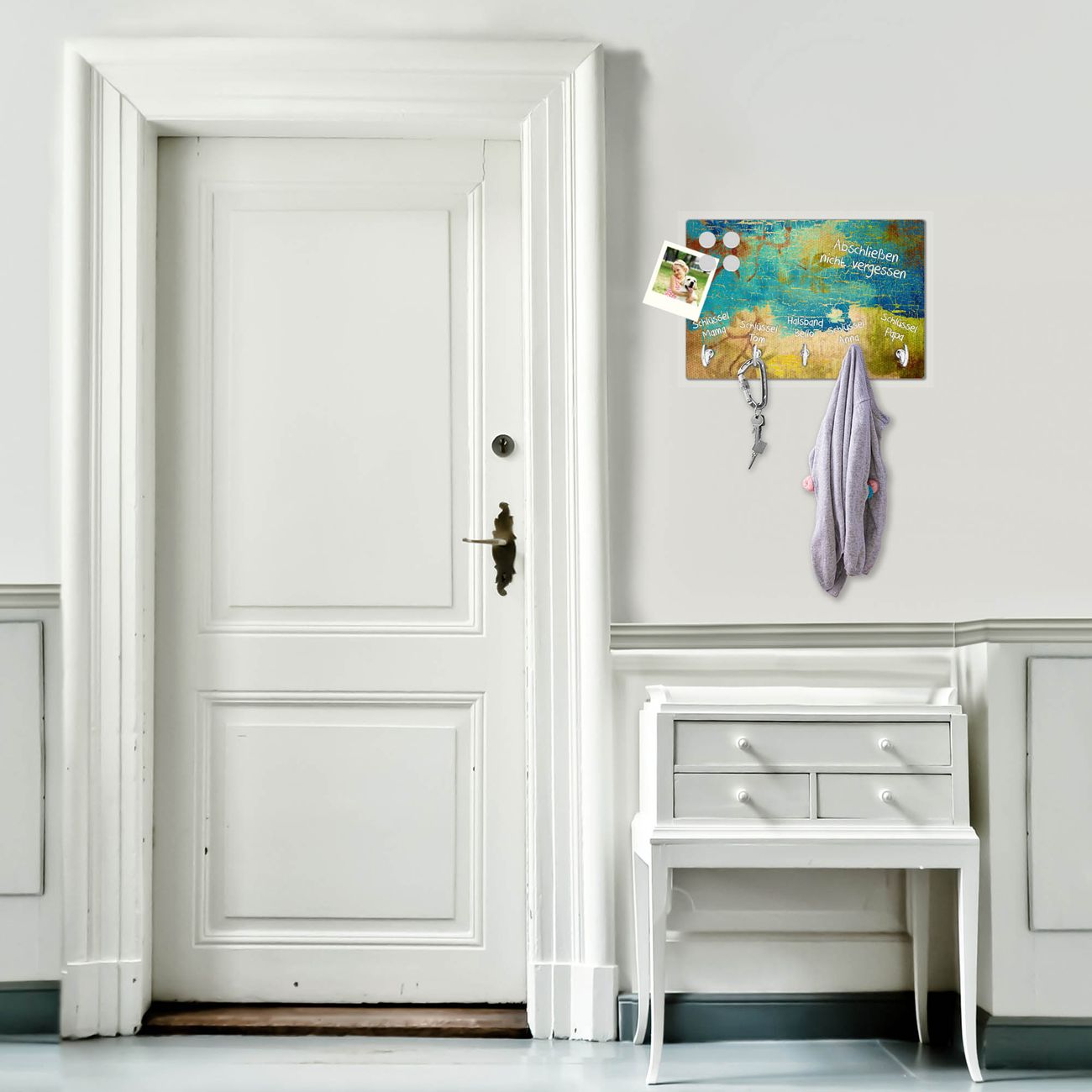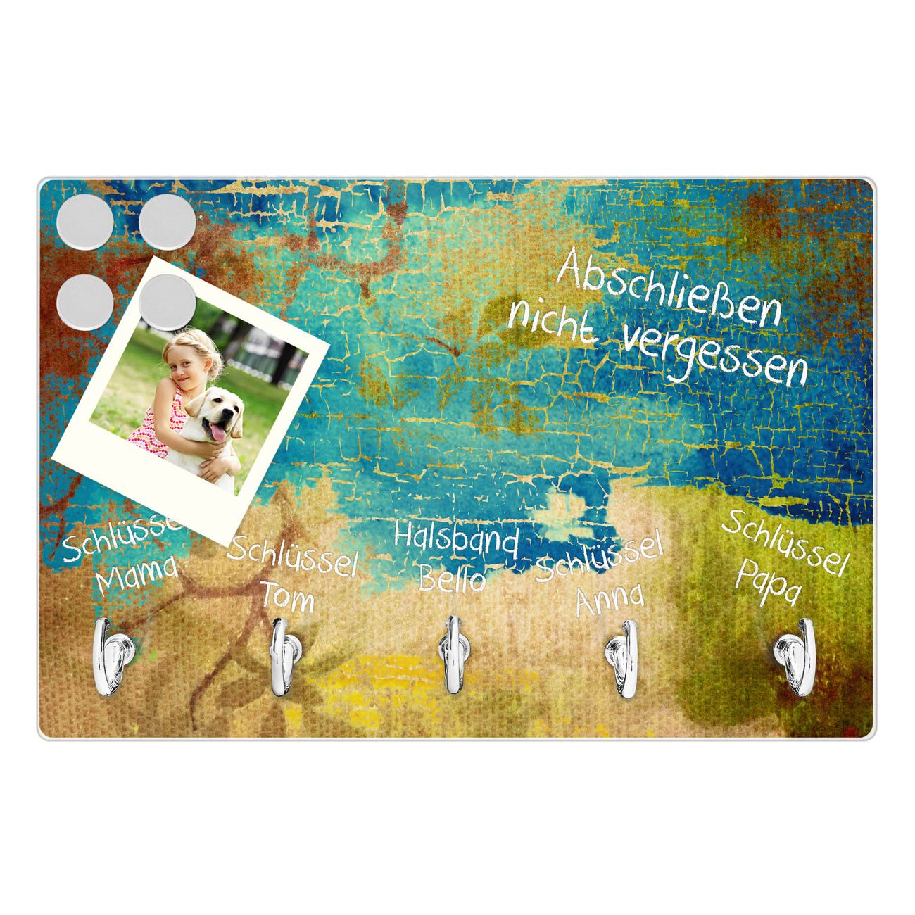 FUNKTION: Mit dem banjado Schlüsselbrett Patina hat Ihre Suche nach dem Schlüsselbund endlich ein Ende! Auf gesamt 5 Haken finden auch die größten Schlüssel ihren Platz. Durch den farbenfrohen Motivdruck ist das Schlüsselboard ein Blickfang in jeder Wohnung. DESIGN: Die Schlüsselleiste mit Motiv Patina hat ein sehr ansprechendes und ausgefallenes Design. Das Glasboard besteht aus einer gehärteten Glasscheibe mit dem Motiv Ihrer Wahl. Ihre neue Schlüsselaufbewahrung ist funktionell und ein optisches Highlight. DETAILS: Das Schlüsselbrett ist 30 x 20 x 4,5 CM (BxHxT). Das ganze Board besteht aus gehärtetem Sicherheitsglas, die Haken zur Selbstmontage präsentieren sich in Edelstahl-Optik. Für einen sicheren Halt erfolgt die Aufhängung an 2 vorgefertigten Haltern an der Rückseite. Das Montagematerial fügen wir bei. NUTZEN: Hier findet alles seinen Platz: Schlüsselbunde, Geschirrtücher, Hundeleinen oder Kinderjacken. Das Glas kann mit Kreidestiften bzw. Whiteboard-Marker beschrieben werden, mit extrastarken Neodym-Magneten können Sie auch Notizen anheften. BANJADO: Wir sind ein kleines Team aus dem Herzen von Sachsen und fertigen Ihre neue Schlüsselaufbewahrung von Hand an. Sie erhalten Handarbeit und keine preiswerte Importware. Wir hoffen, dass Ihnen unsere Idee zusagt, herzlichst das banjado Team.
