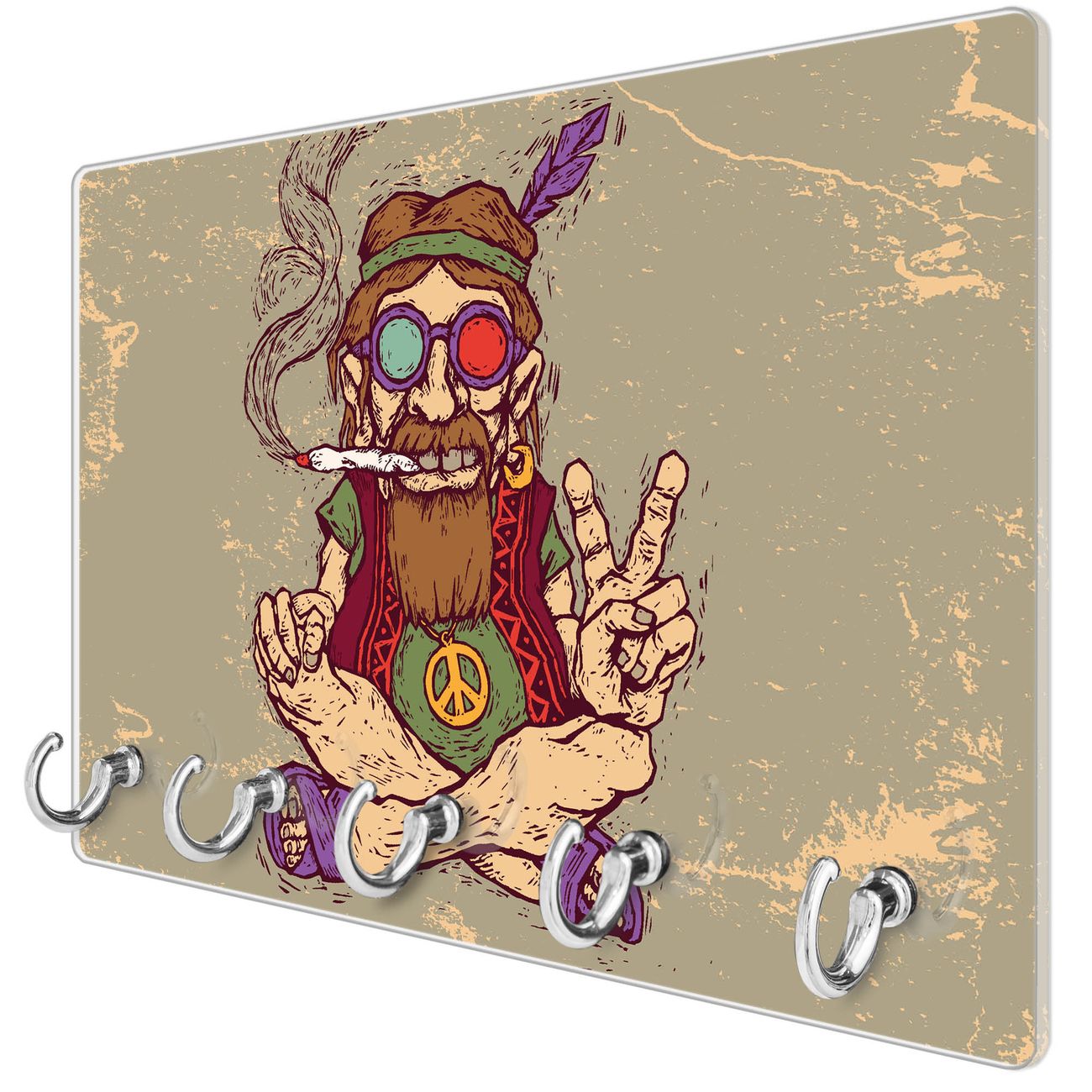 Glas Schlüsselbrett mit 5 Haken Peace