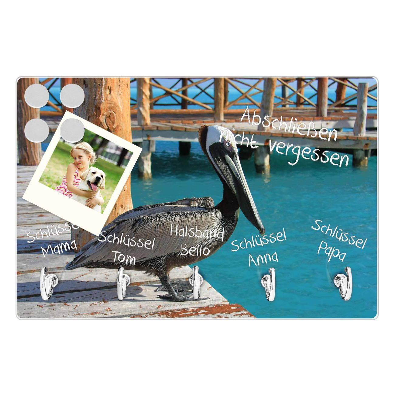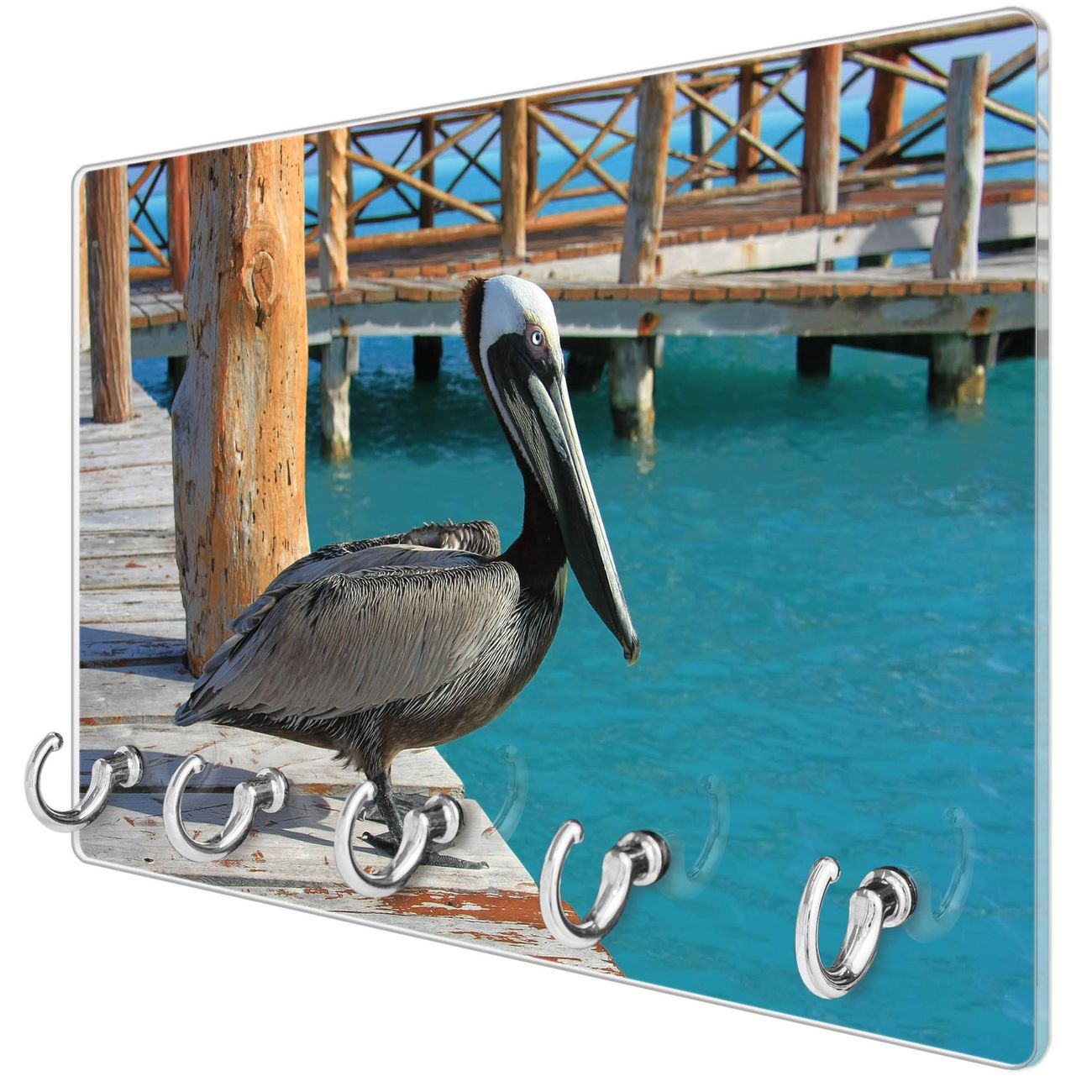 Glas Schlüsselbrett mit 5 Haken Pelikan