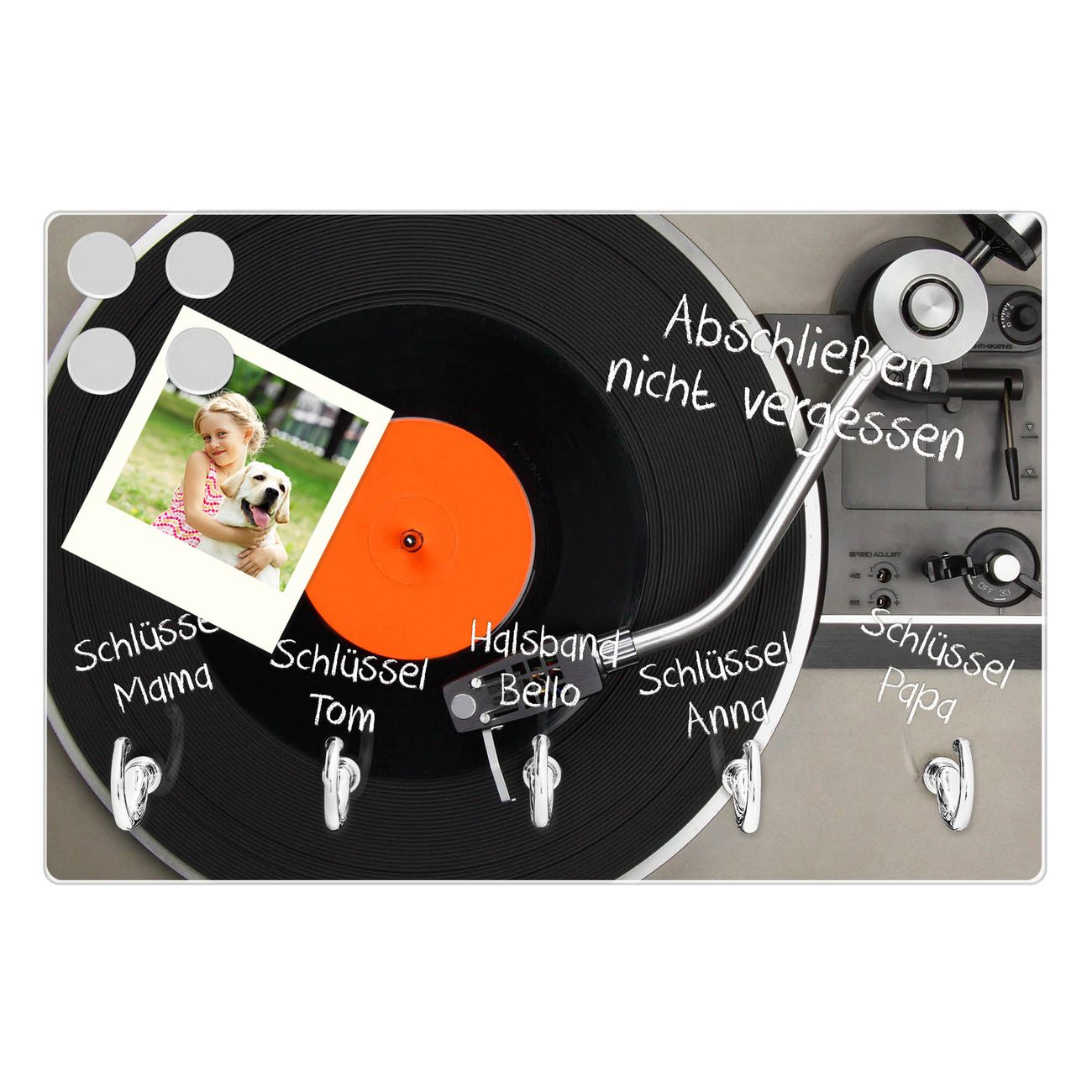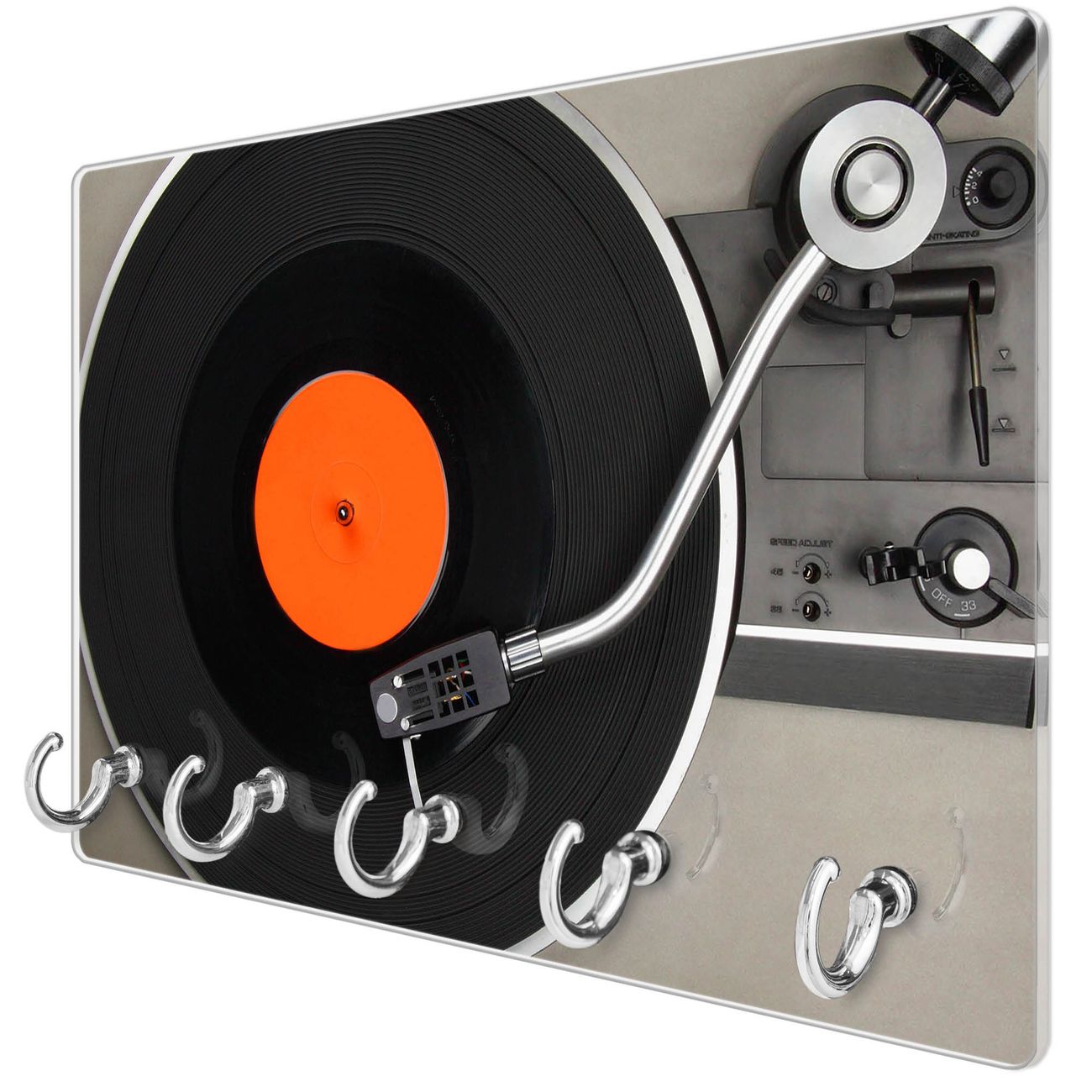 Glas Schlüsselbrett mit 5 Haken Plattenspieler