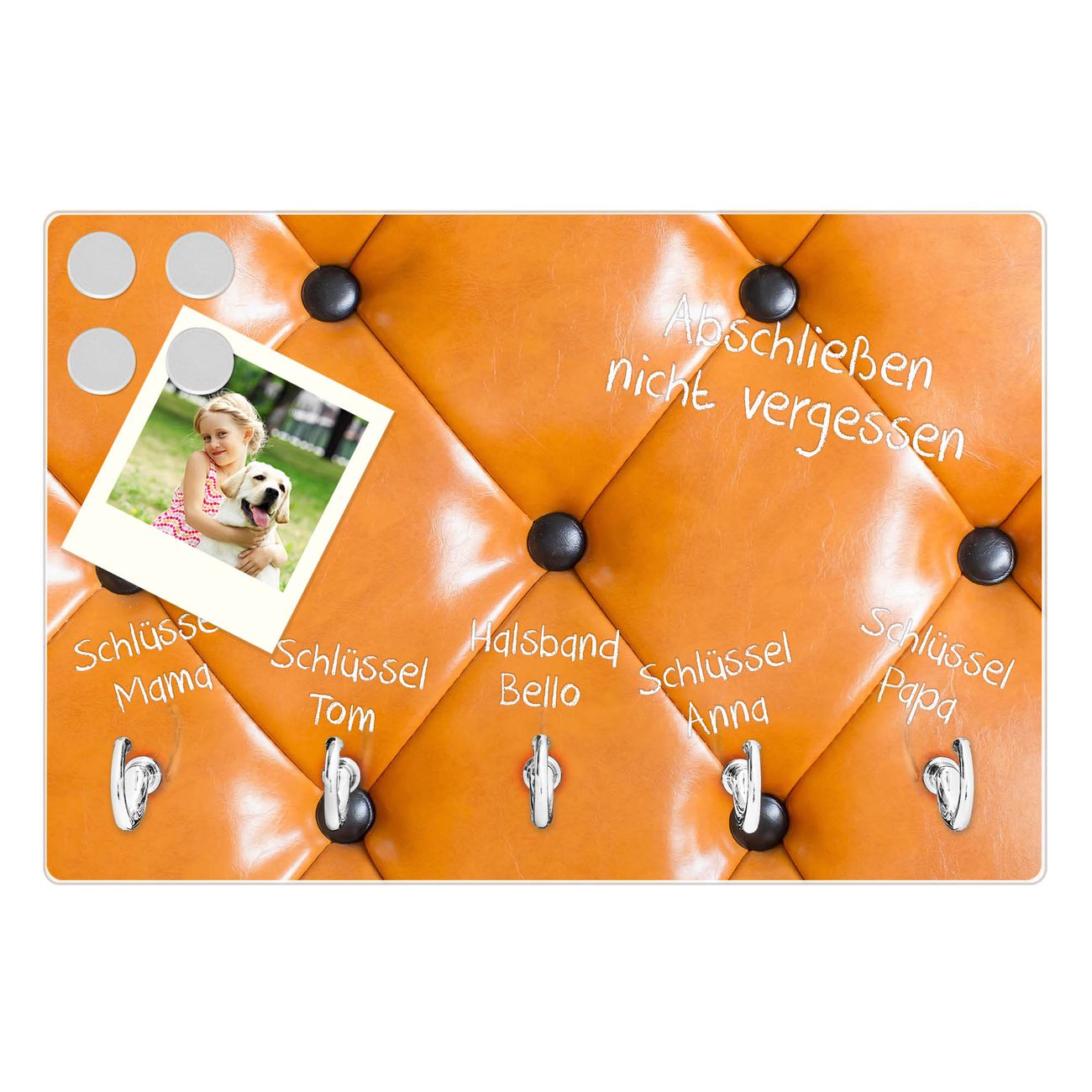 Glas Schlüsselbrett mit 5 Haken Polster Orange