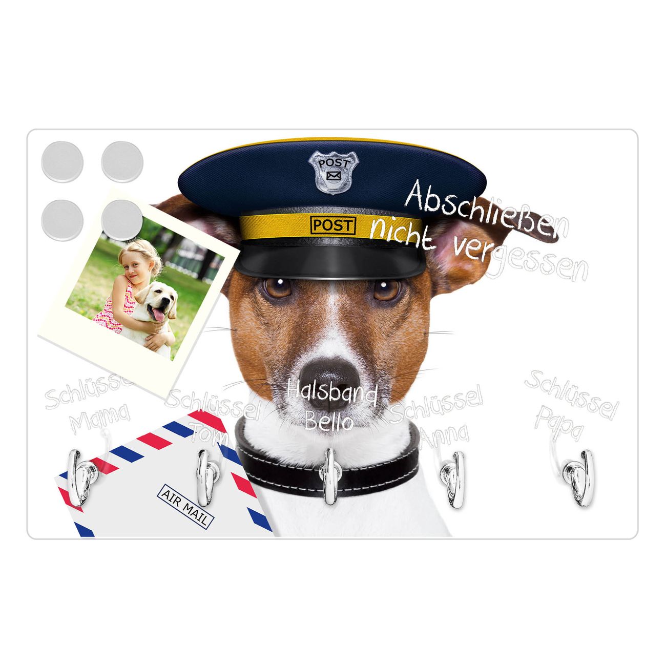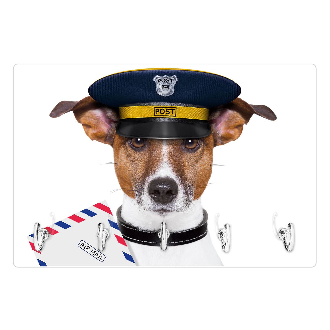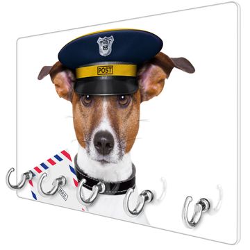 Glas Schlüsselbrett mit 5 Haken Postbote Jack Russel