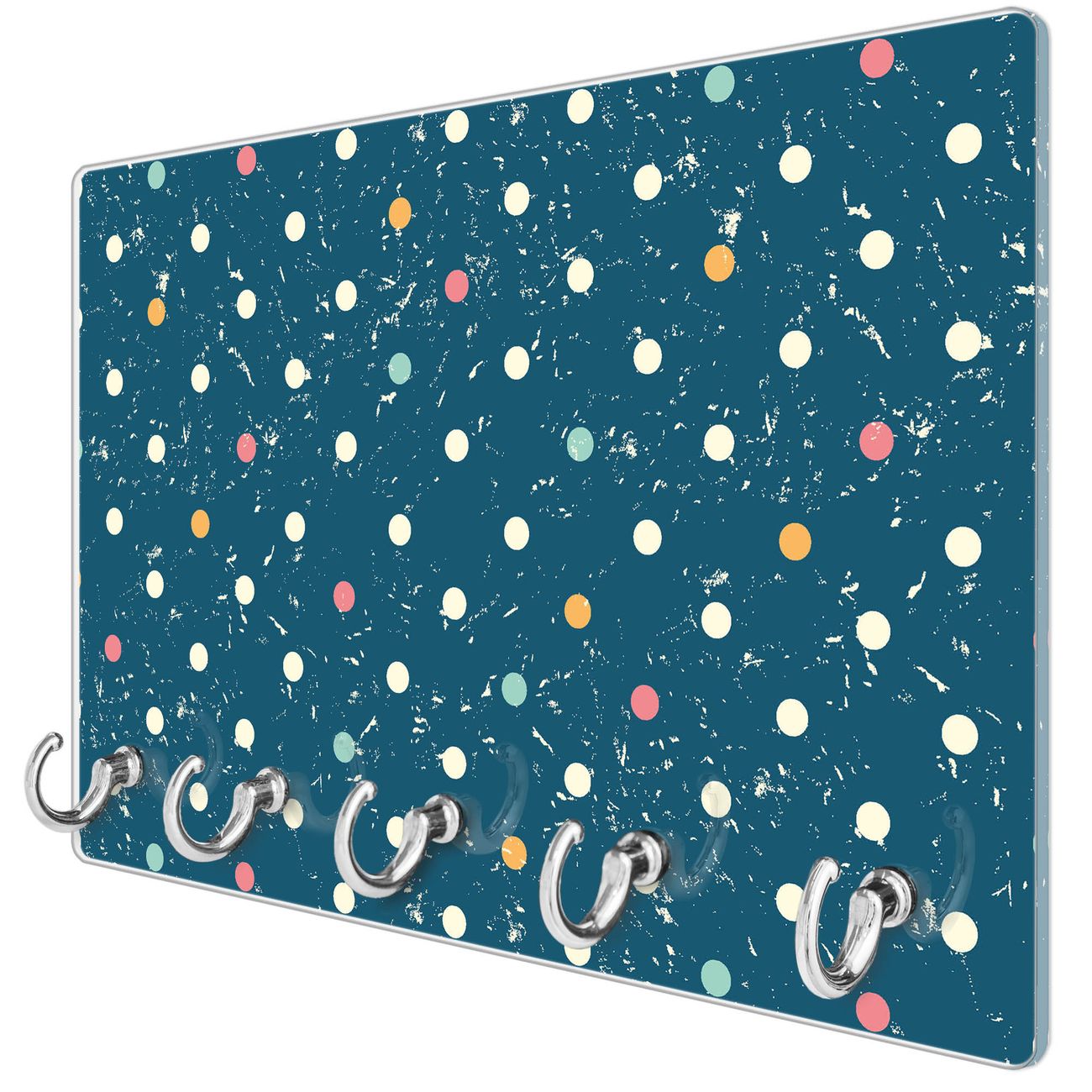 Glas Schlüsselbrett mit 5 Haken Punkte auf Blau