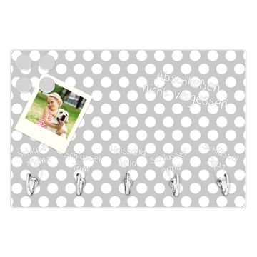 Glas Schlüsselbrett mit 5 Haken Punkte Grau