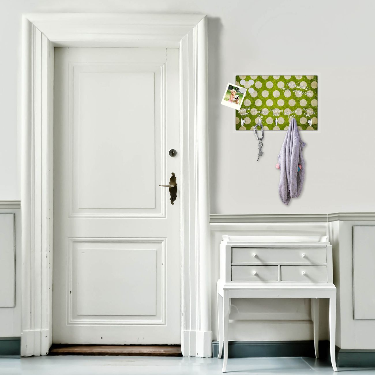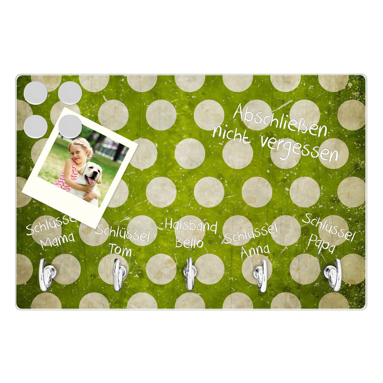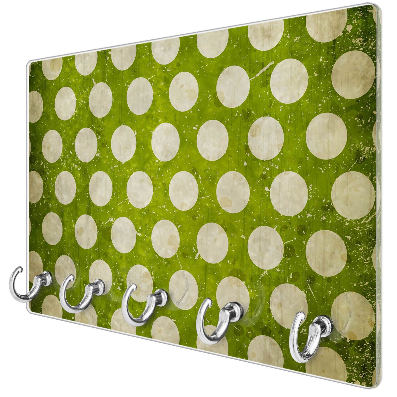 Glas Schlüsselbrett mit 5 Haken Punkte Grün Vintage