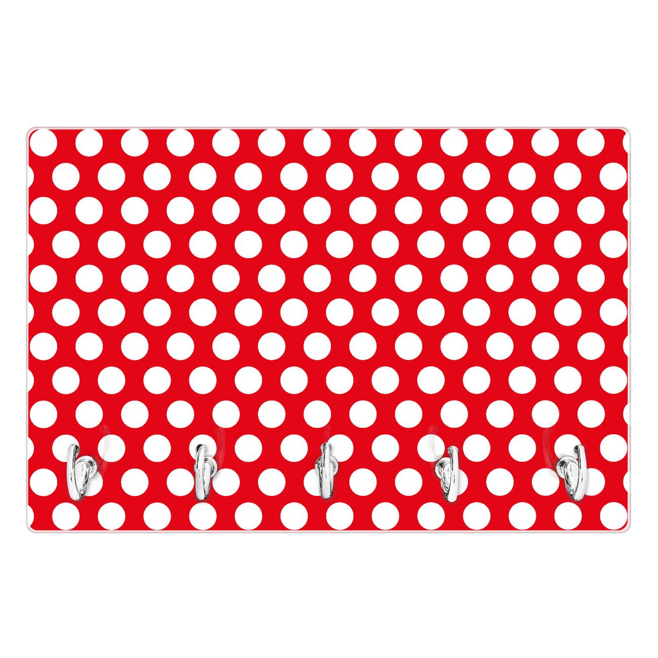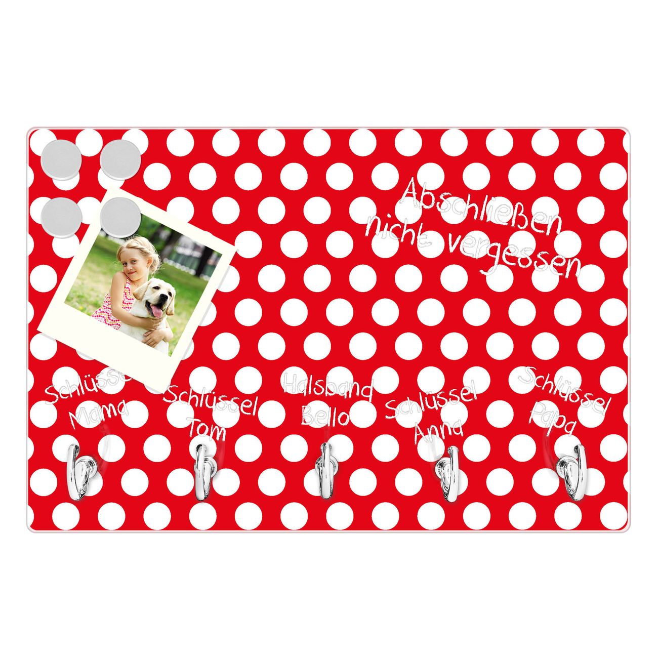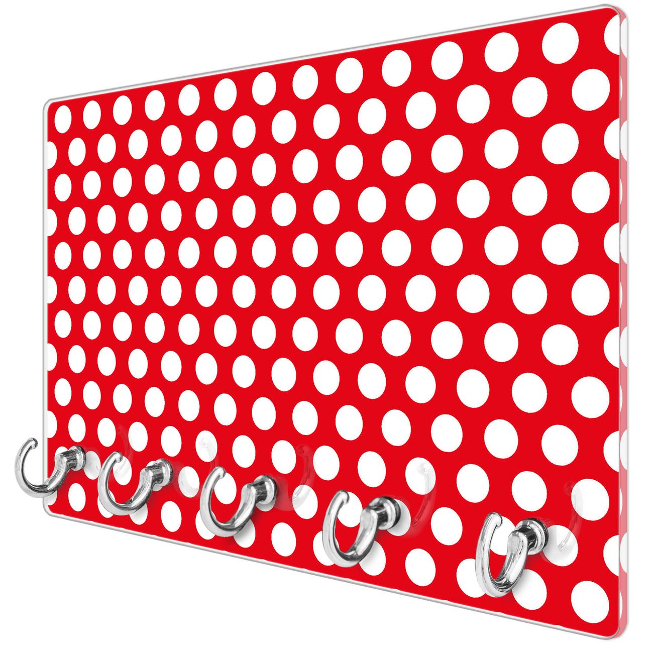 Glas Schlüsselbrett mit 5 Haken Punkte Rot