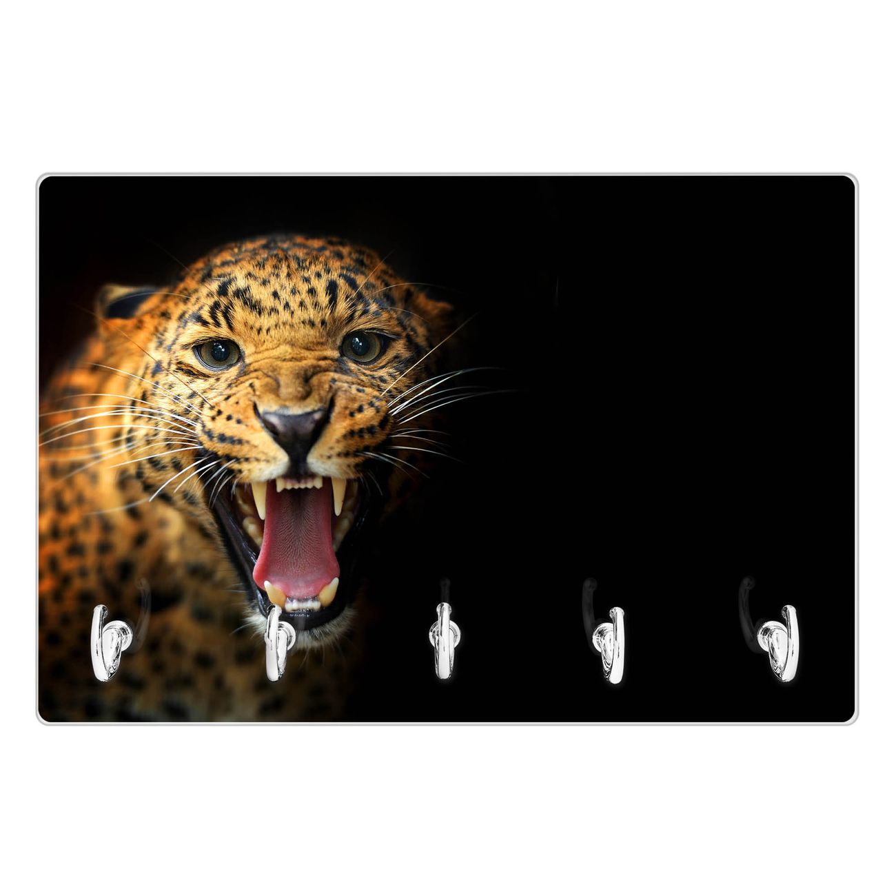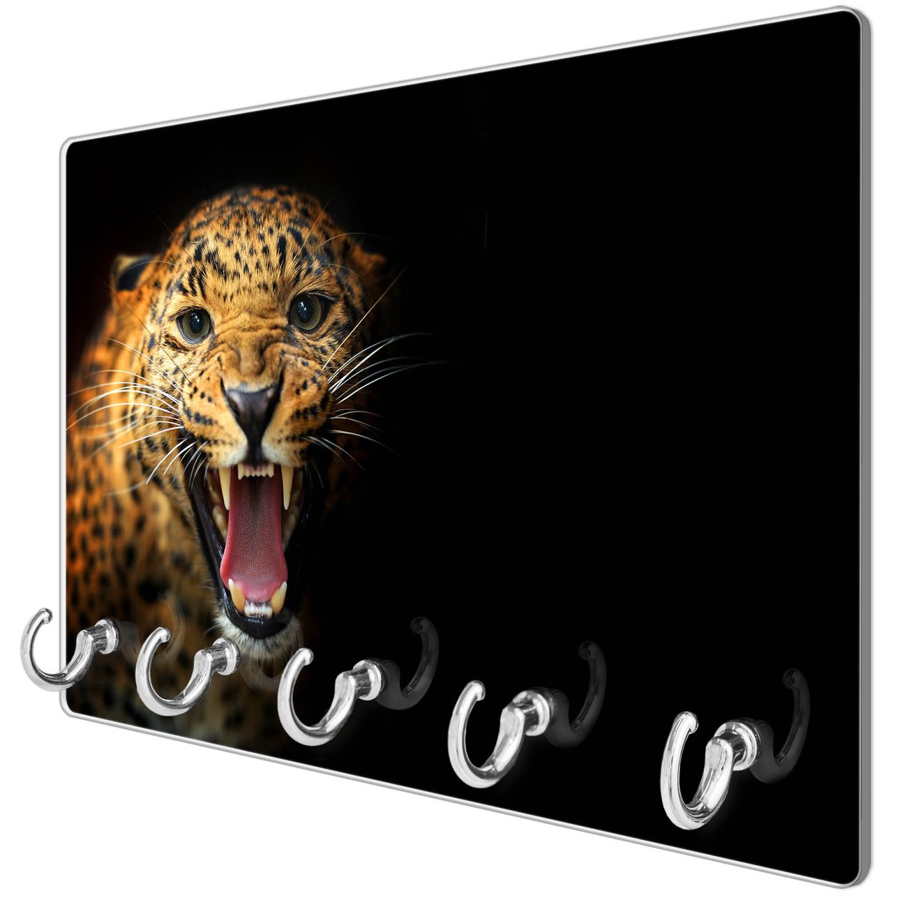 Glas Schlüsselbrett mit 5 Haken Raubkatze