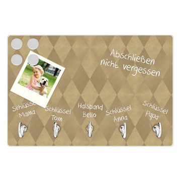 Glas Schlüsselbrett mit 5 Haken Rauten Metall