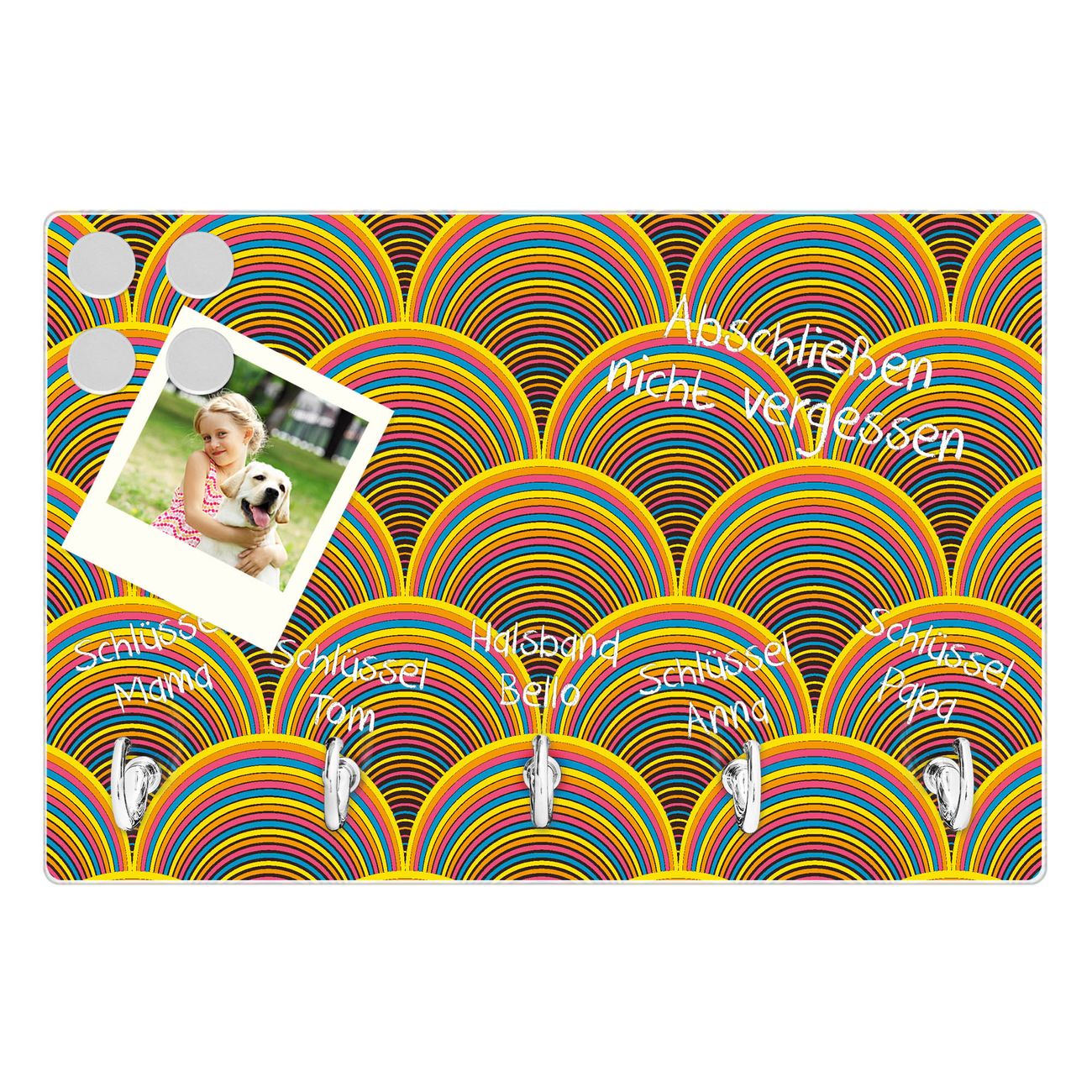 Glas Schlüsselbrett mit 5 Haken Regenbögen