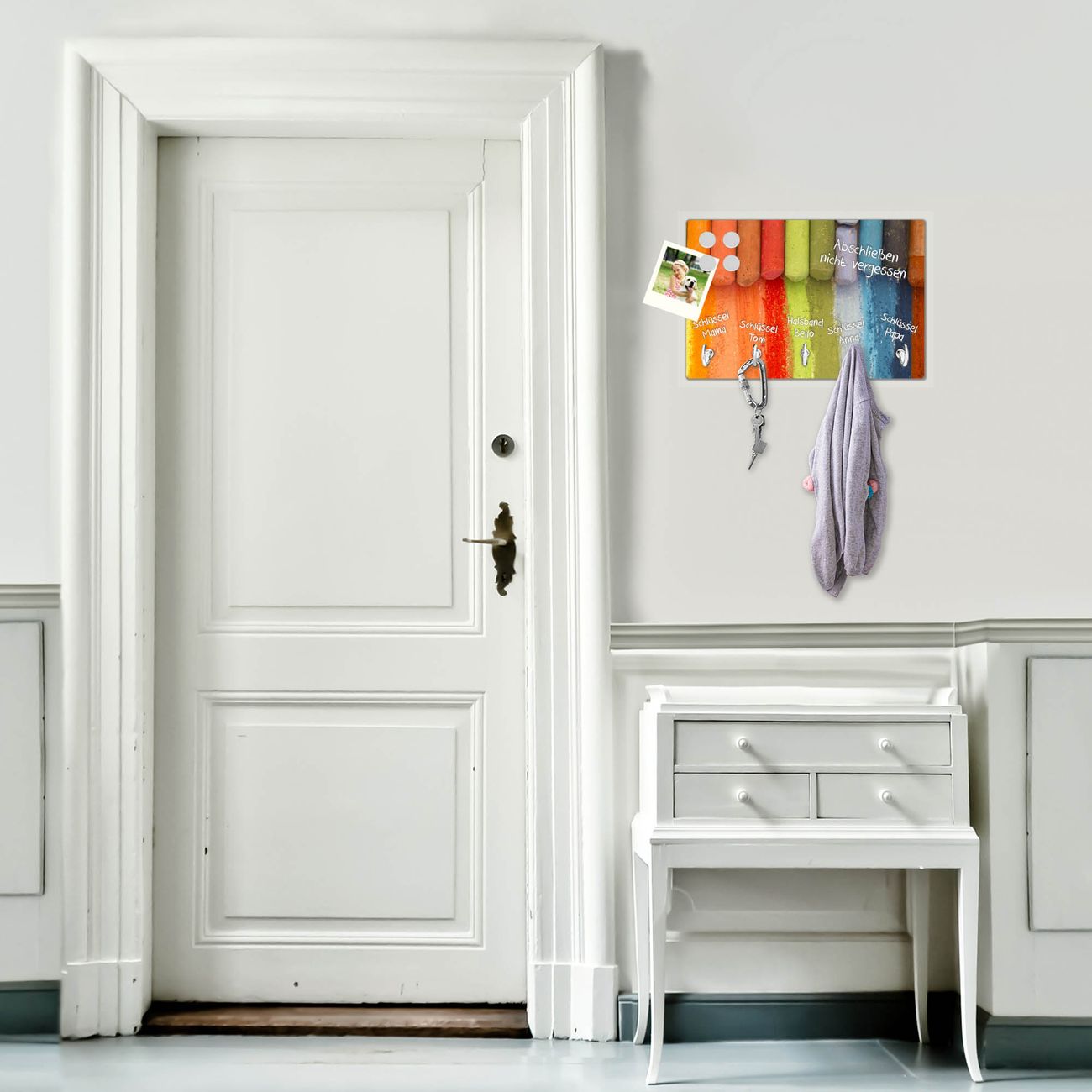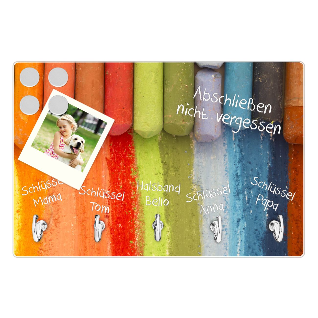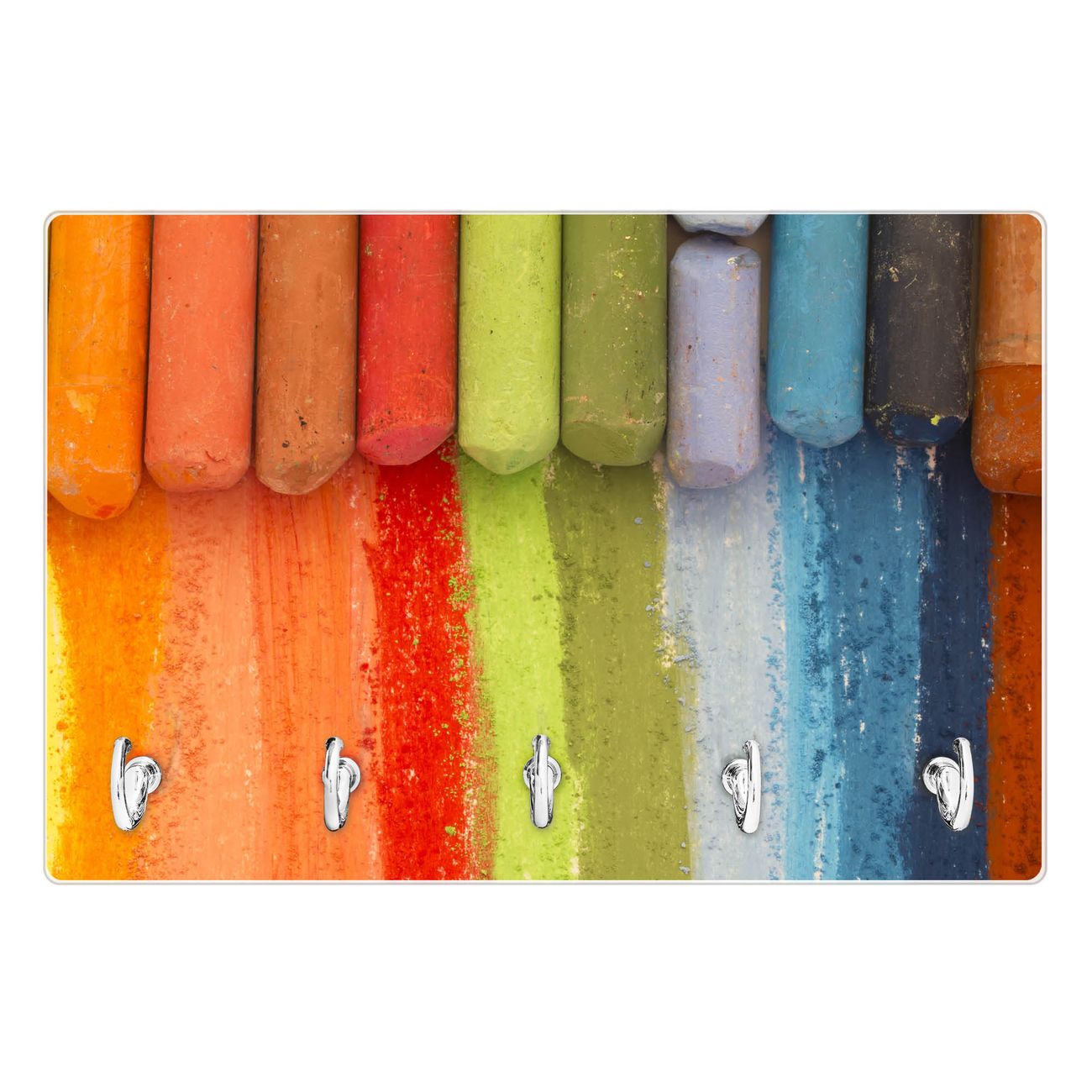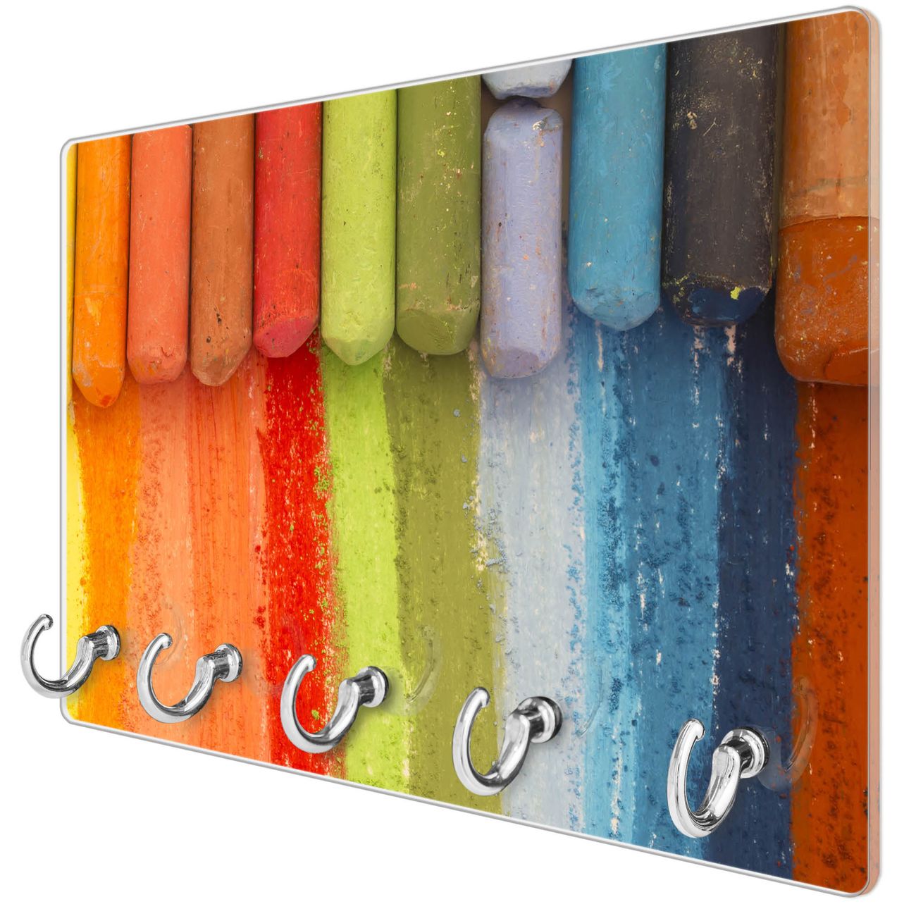 Glas Schlüsselbrett mit 5 Haken Regenbogenkreide