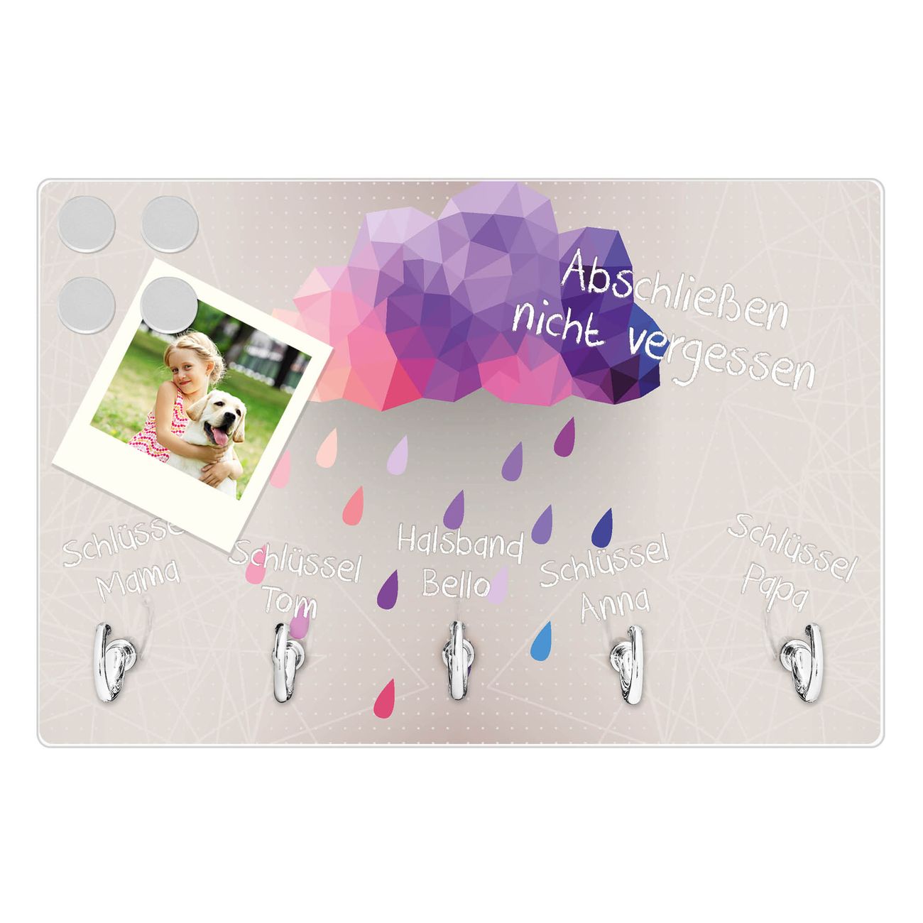 Glas Schlüsselbrett mit 5 Haken Regenwolke