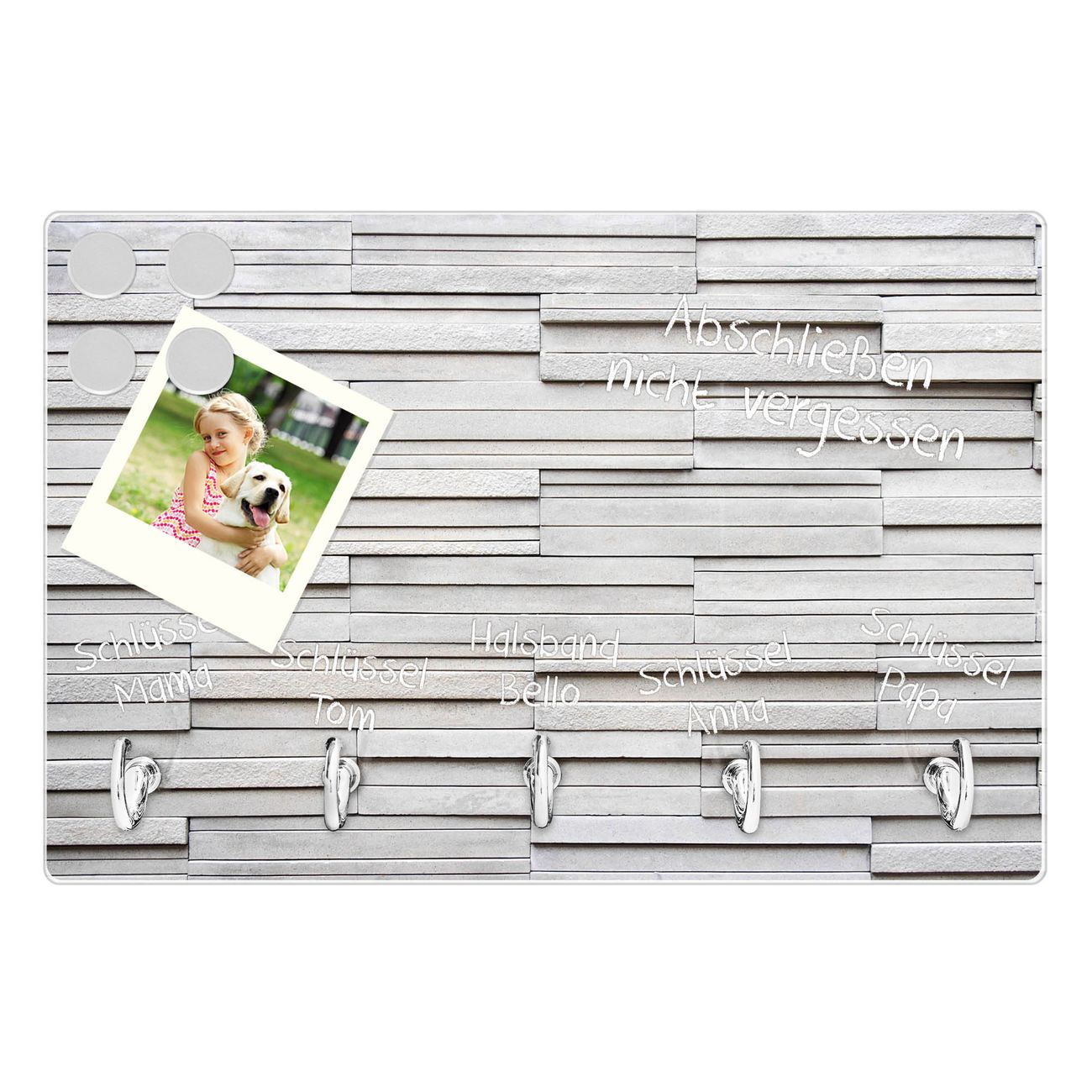 FUNKTION: Mit dem banjado Schlüsselbrett Relief hat Ihre Suche nach dem Schlüsselbund endlich ein Ende! Auf gesamt 5 Haken finden auch die größten Schlüssel ihren Platz. Durch den farbenfrohen Motivdruck ist das Schlüsselboard ein Blickfang in jeder Wohnung. DESIGN: Die Schlüsselleiste mit Motiv Relief hat ein sehr ansprechendes und ausgefallenes Design. Das Glasboard besteht aus einer gehärteten Glasscheibe mit dem Motiv Ihrer Wahl. Ihre neue Schlüsselaufbewahrung ist funktionell und ein optisches Highlight. DETAILS: Das Schlüsselbrett ist 30 x 20 x 4,5 CM (BxHxT). Das ganze Board besteht aus gehärtetem Sicherheitsglas, die Haken zur Selbstmontage präsentieren sich in Edelstahl-Optik. Für einen sicheren Halt erfolgt die Aufhängung an 2 vorgefertigten Haltern an der Rückseite. Das Montagematerial fügen wir bei. NUTZEN: Hier findet alles seinen Platz: Schlüsselbunde, Geschirrtücher, Hundeleinen oder Kinderjacken. Das Glas kann mit Kreidestiften bzw. Whiteboard-Marker beschrieben werden, mit extrastarken Neodym-Magneten können Sie auch Notizen anheften. BANJADO: Wir sind ein kleines Team aus dem Herzen von Sachsen und fertigen Ihre neue Schlüsselaufbewahrung von Hand an. Sie erhalten Handarbeit und keine preiswerte Importware. Wir hoffen, dass Ihnen unsere Idee zusagt, herzlichst das banjado Team.