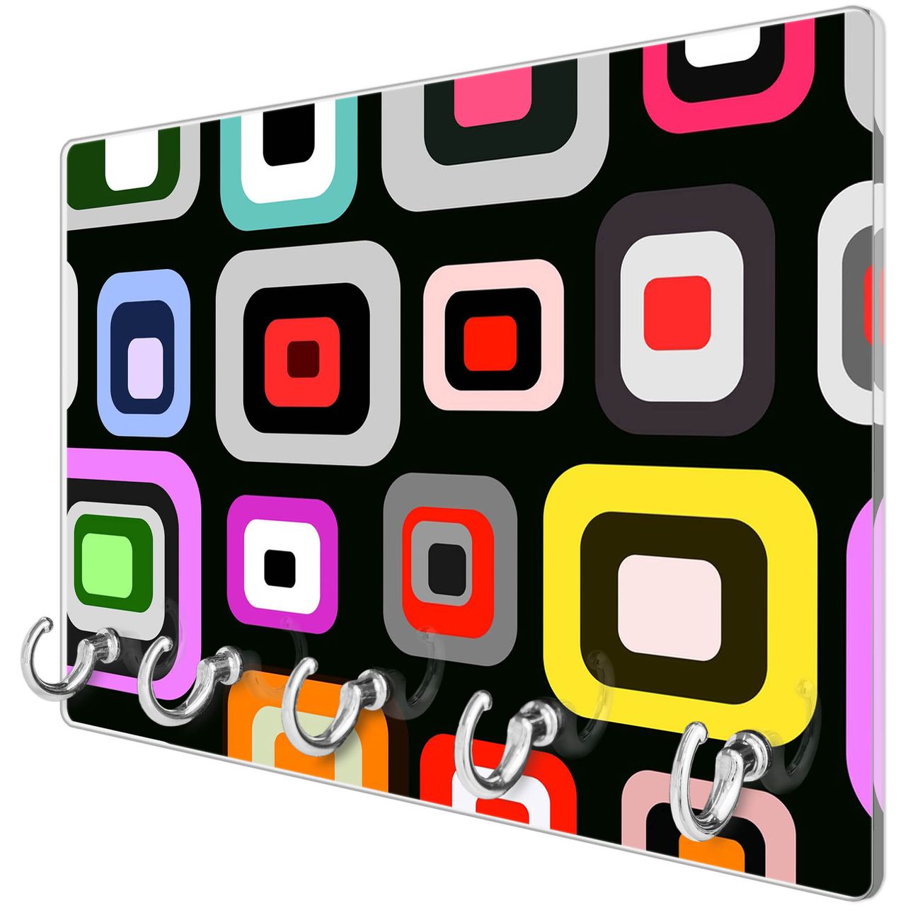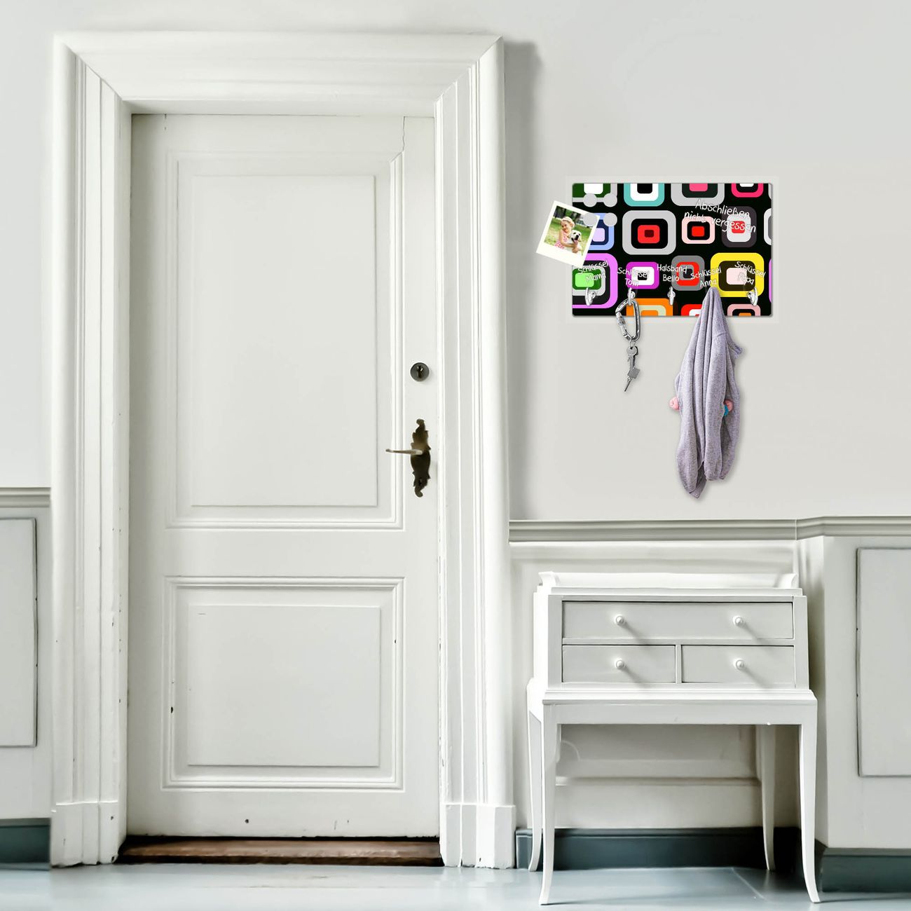 FUNKTION: Mit dem banjado Schlüsselbrett Retro hat Ihre Suche nach dem Schlüsselbund endlich ein Ende! Auf gesamt 5 Haken finden auch die größten Schlüssel ihren Platz. Durch den farbenfrohen Motivdruck ist das Schlüsselboard ein Blickfang in jeder Wohnung. DESIGN: Die Schlüsselleiste mit Motiv Retro hat ein sehr ansprechendes und ausgefallenes Design. Das Glasboard besteht aus einer gehärteten Glasscheibe mit dem Motiv Ihrer Wahl. Ihre neue Schlüsselaufbewahrung ist funktionell und ein optisches Highlight. DETAILS: Das Schlüsselbrett ist 30 x 20 x 4,5 CM (BxHxT). Das ganze Board besteht aus gehärtetem Sicherheitsglas, die Haken zur Selbstmontage präsentieren sich in Edelstahl-Optik. Für einen sicheren Halt erfolgt die Aufhängung an 2 vorgefertigten Haltern an der Rückseite. Das Montagematerial fügen wir bei. NUTZEN: Hier findet alles seinen Platz: Schlüsselbunde, Geschirrtücher, Hundeleinen oder Kinderjacken. Das Glas kann mit Kreidestiften bzw. Whiteboard-Marker beschrieben werden, mit extrastarken Neodym-Magneten können Sie auch Notizen anheften. BANJADO: Wir sind ein kleines Team aus dem Herzen von Sachsen und fertigen Ihre neue Schlüsselaufbewahrung von Hand an. Sie erhalten Handarbeit und keine preiswerte Importware. Wir hoffen, dass Ihnen unsere Idee zusagt, herzlichst das banjado Team.