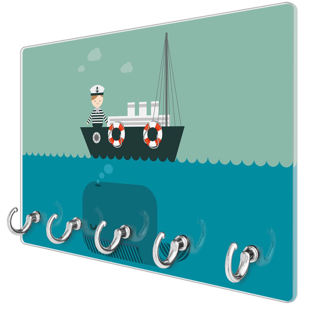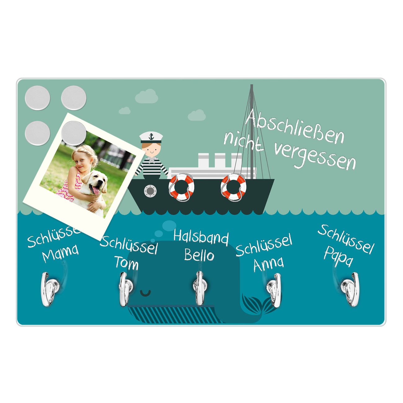 Glas Schlüsselbrett mit 5 Haken Rettet die Wale