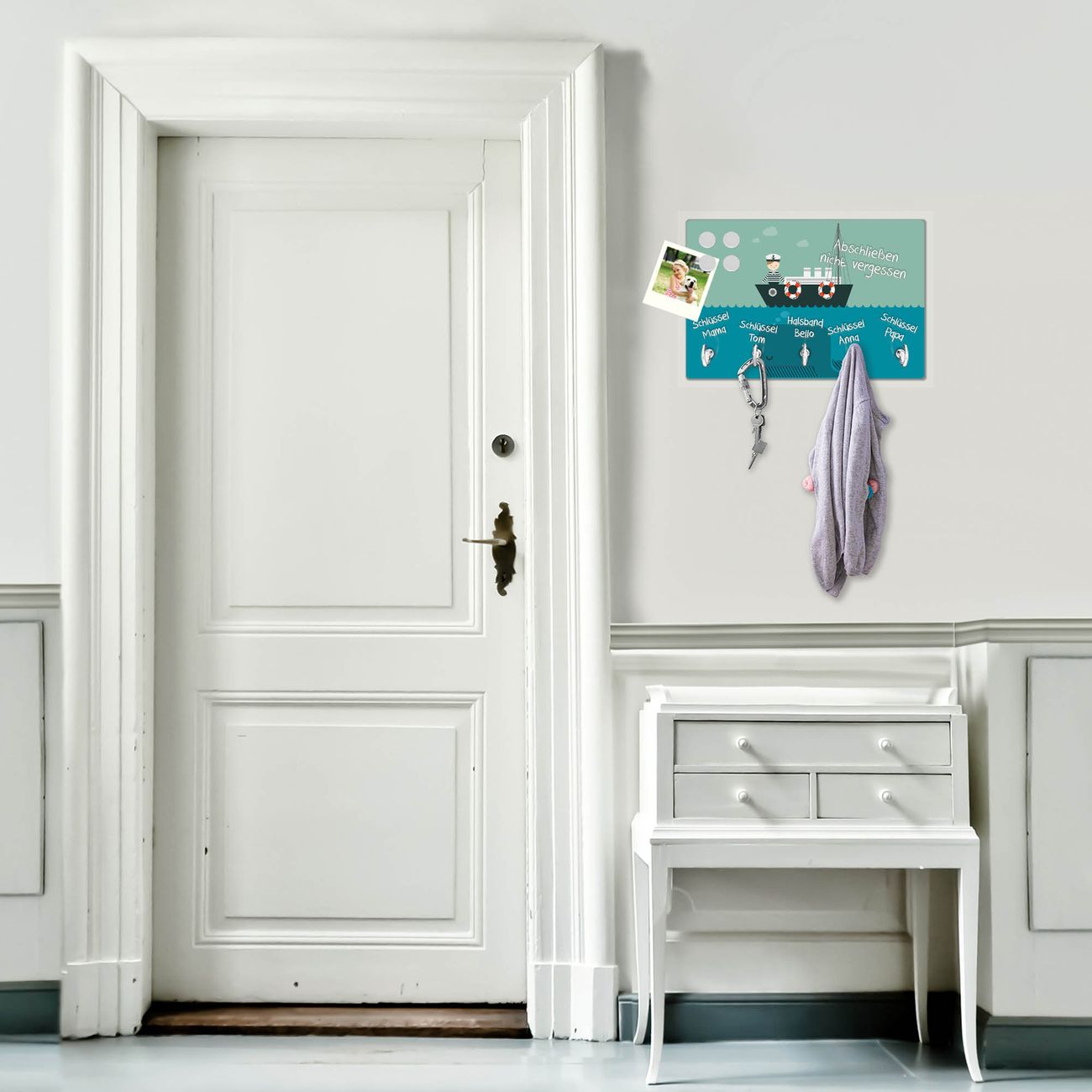 FUNKTION: Mit dem banjado Schlüsselbrett Rettet die Wale hat Ihre Suche nach dem Schlüsselbund endlich ein Ende! Auf gesamt 5 Haken finden auch die größten Schlüssel ihren Platz. Durch den farbenfrohen Motivdruck ist das Schlüsselboard ein Blickfang in jeder Wohnung. DESIGN: Die Schlüsselleiste mit Motiv Rettet die Wale hat ein sehr ansprechendes und ausgefallenes Design. Das Glasboard besteht aus einer gehärteten Glasscheibe mit dem Motiv Ihrer Wahl. Ihre neue Schlüsselaufbewahrung ist funktionell und ein optisches Highlight. DETAILS: Das Schlüsselbrett ist 30 x 20 x 4,5 CM (BxHxT). Das ganze Board besteht aus gehärtetem Sicherheitsglas, die Haken zur Selbstmontage präsentieren sich in Edelstahl-Optik. Für einen sicheren Halt erfolgt die Aufhängung an 2 vorgefertigten Haltern an der Rückseite. Das Montagematerial fügen wir bei. NUTZEN: Hier findet alles seinen Platz: Schlüsselbunde, Geschirrtücher, Hundeleinen oder Kinderjacken. Das Glas kann mit Kreidestiften bzw. Whiteboard-Marker beschrieben werden, mit extrastarken Neodym-Magneten können Sie auch Notizen anheften. BANJADO: Wir sind ein kleines Team aus dem Herzen von Sachsen und fertigen Ihre neue Schlüsselaufbewahrung von Hand an. Sie erhalten Handarbeit und keine preiswerte Importware. Wir hoffen, dass Ihnen unsere Idee zusagt, herzlichst das banjado Team.