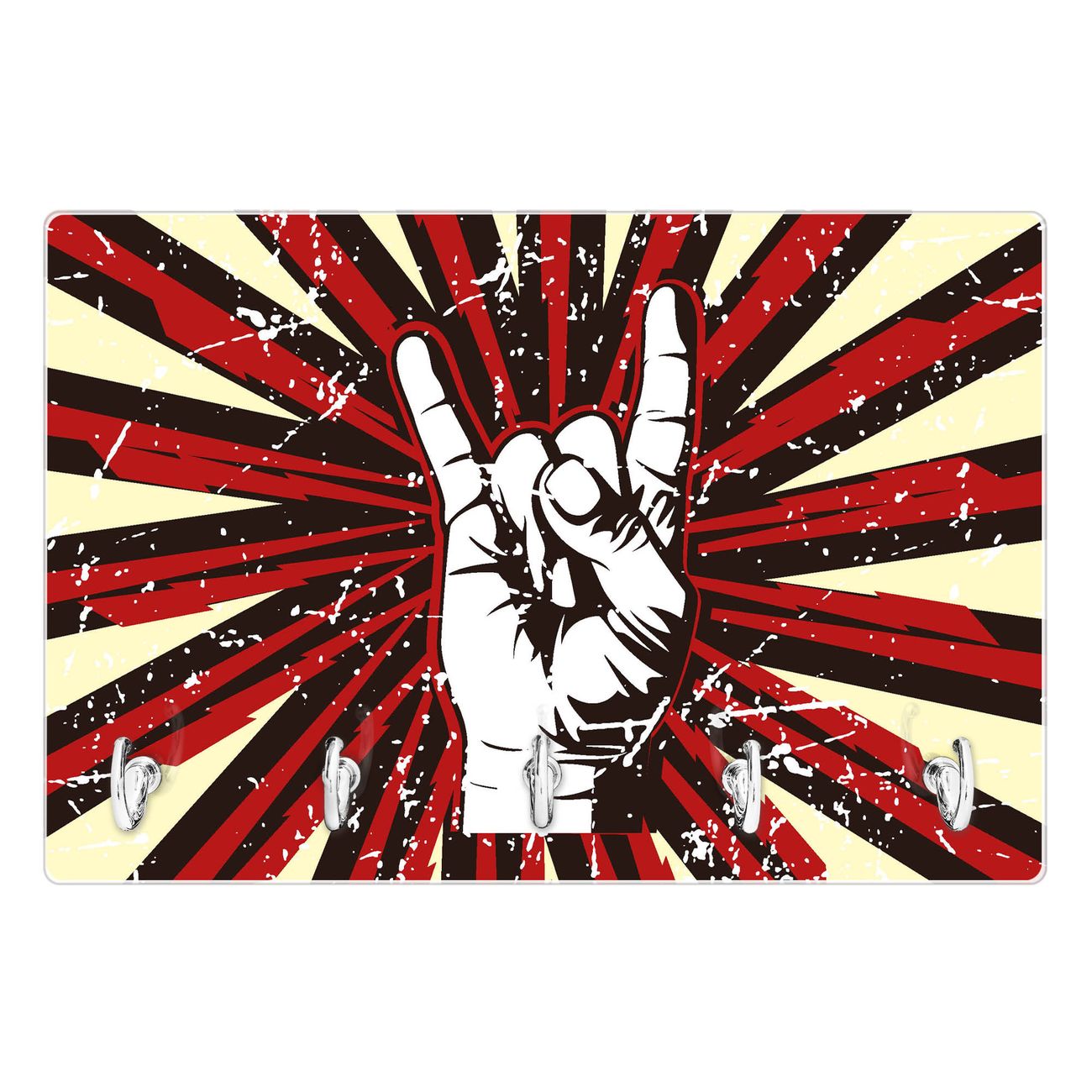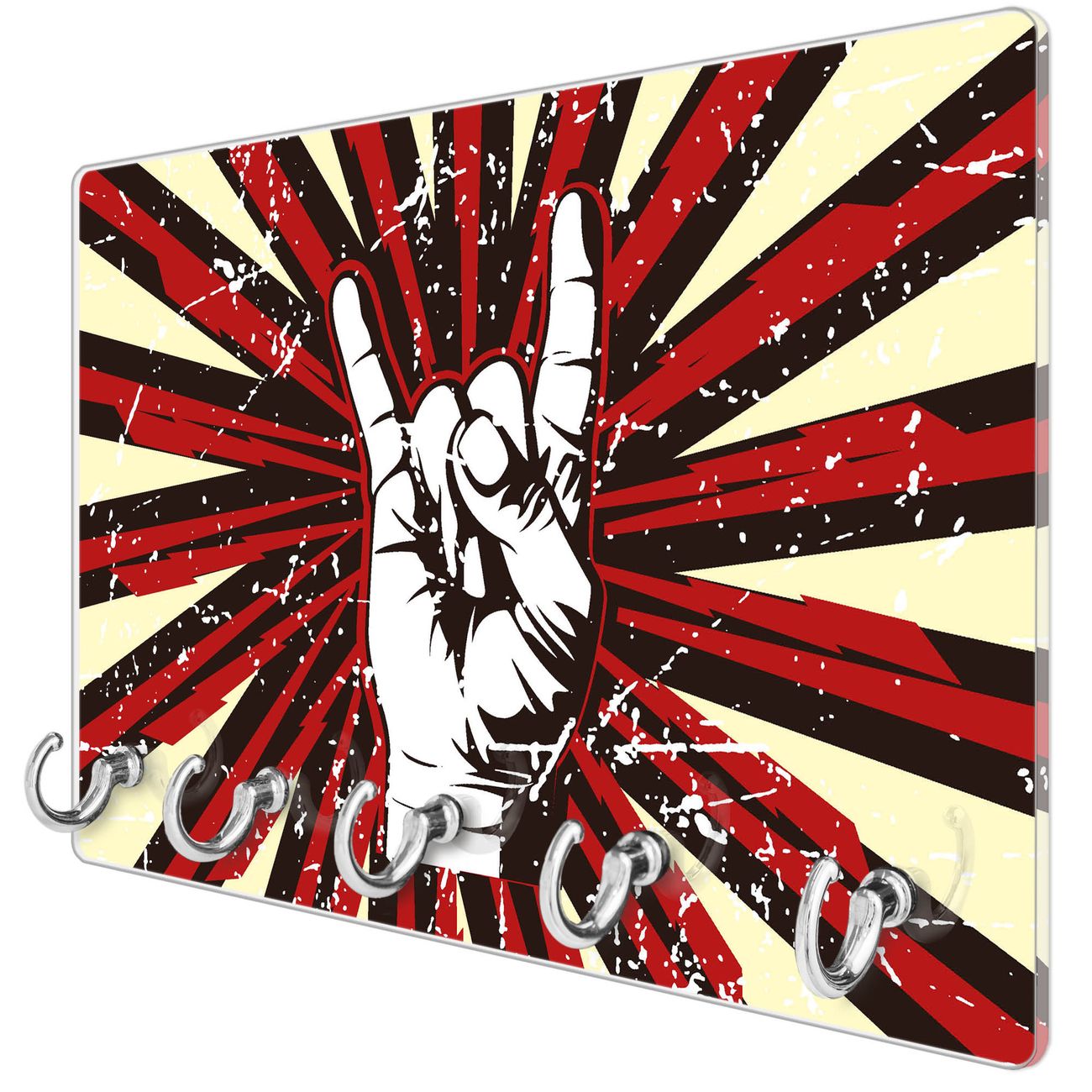 Glas Schlüsselbrett mit 5 Haken Rock On
