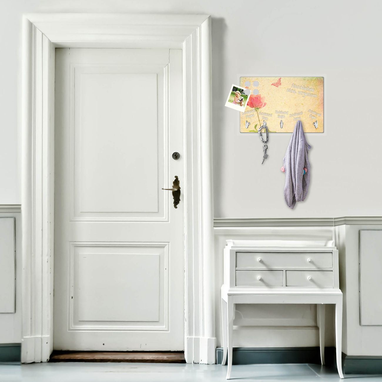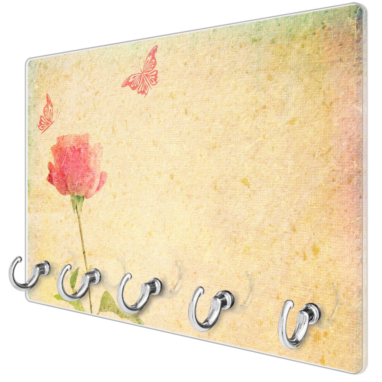Glas Schlüsselbrett mit 5 Haken Romantik