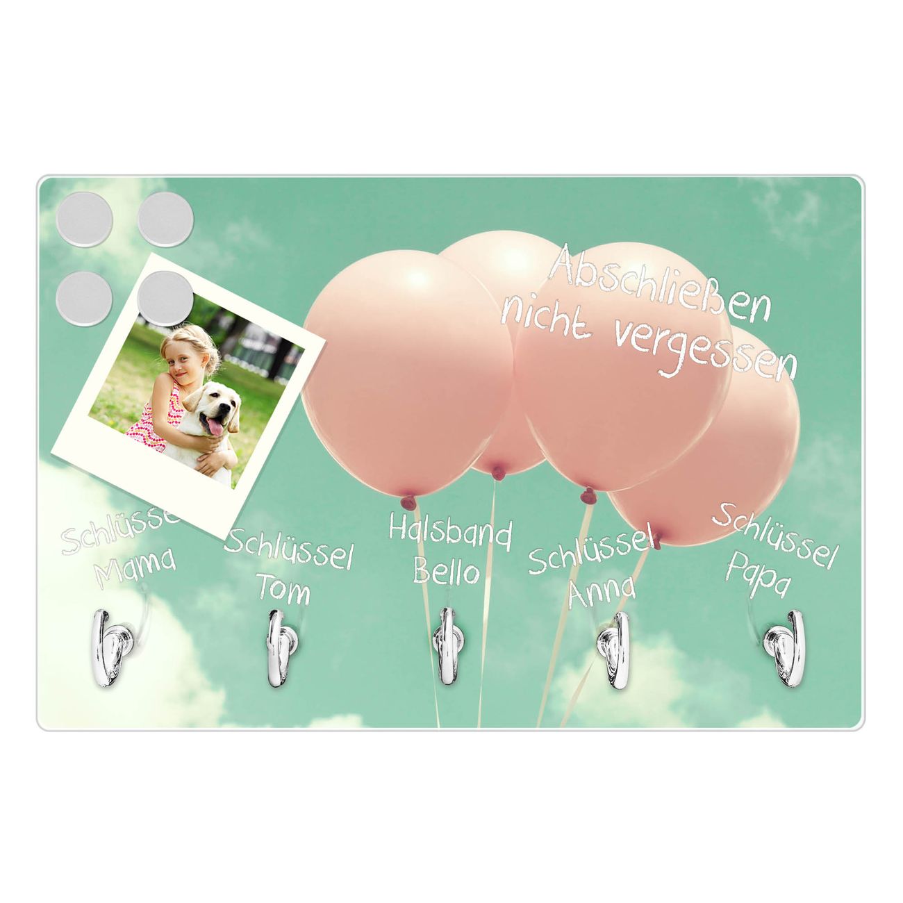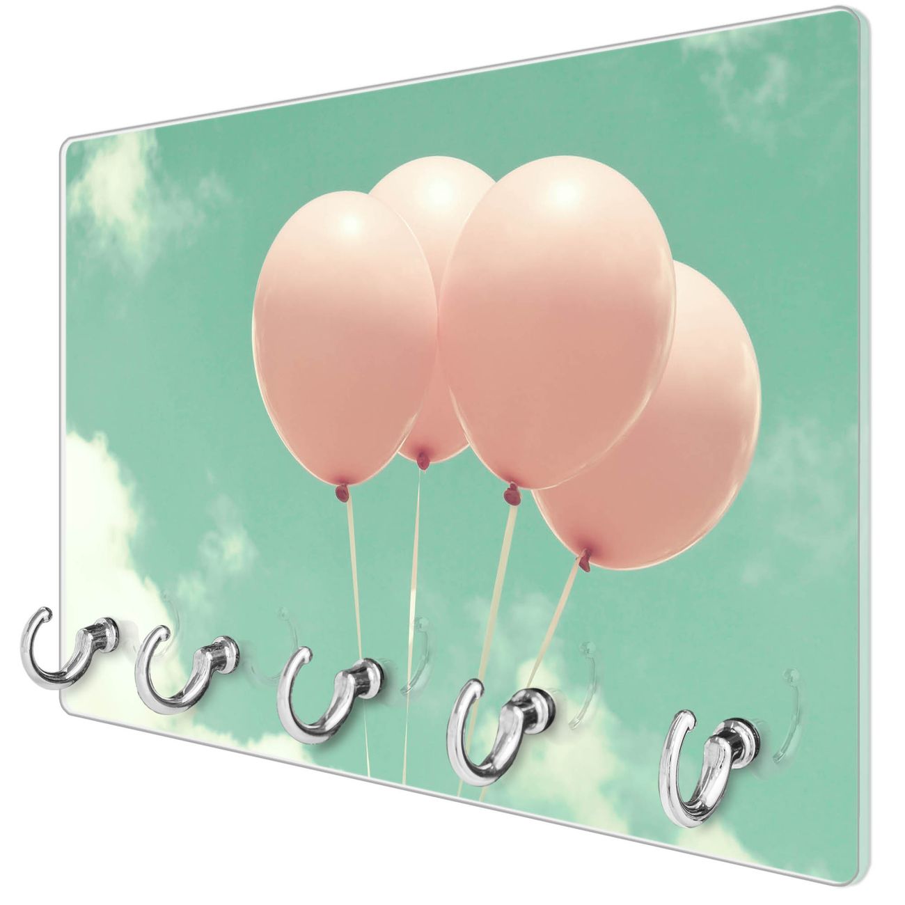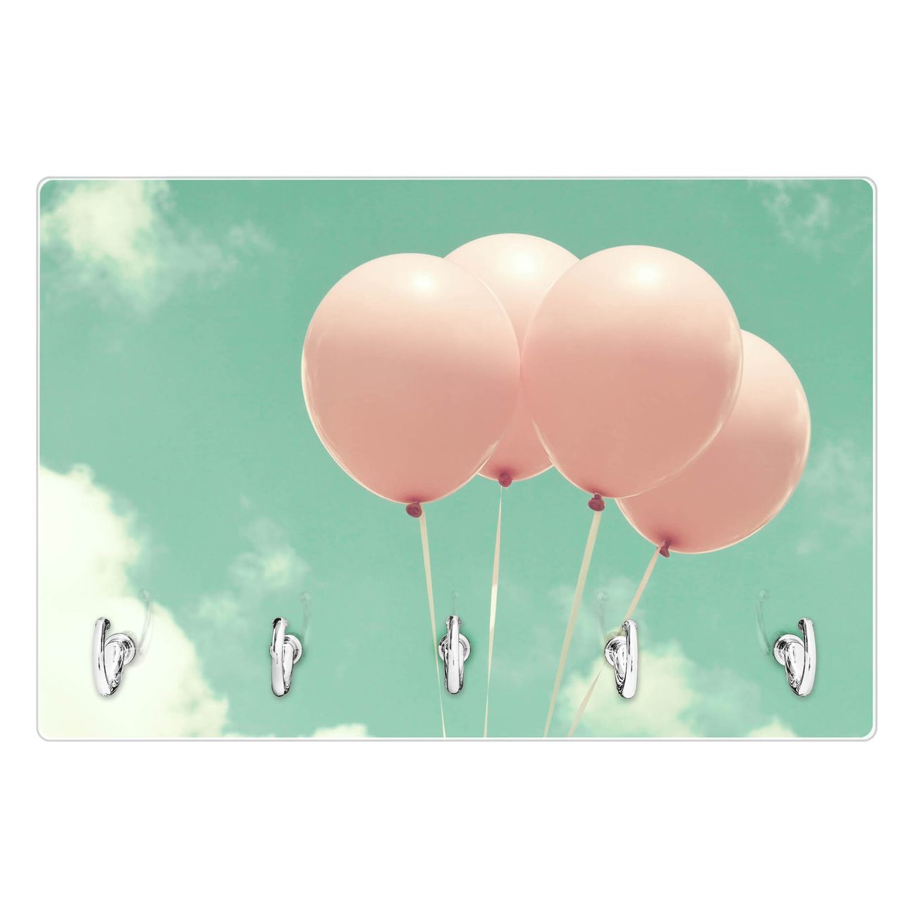 Glas Schlüsselbrett mit 5 Haken Rosa Ballons
