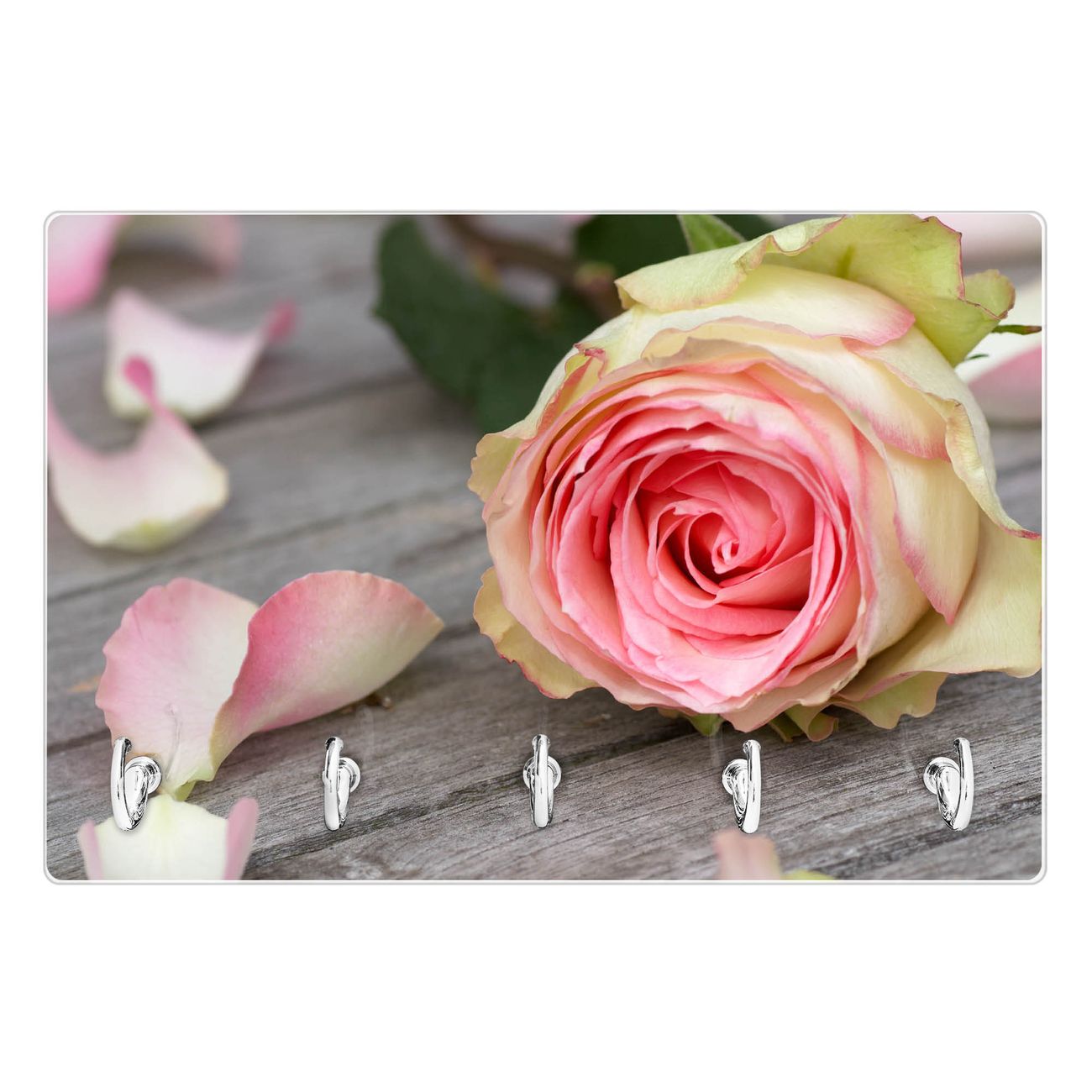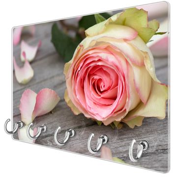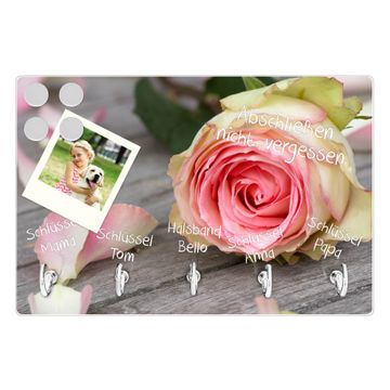 Glas Schlüsselbrett mit 5 Haken Rosa Rose