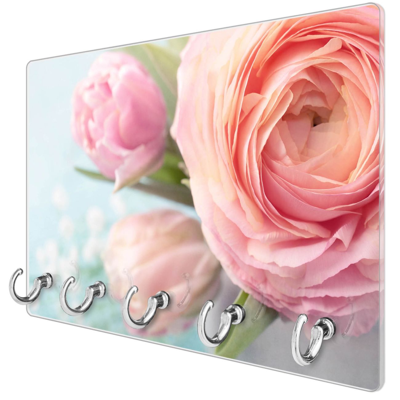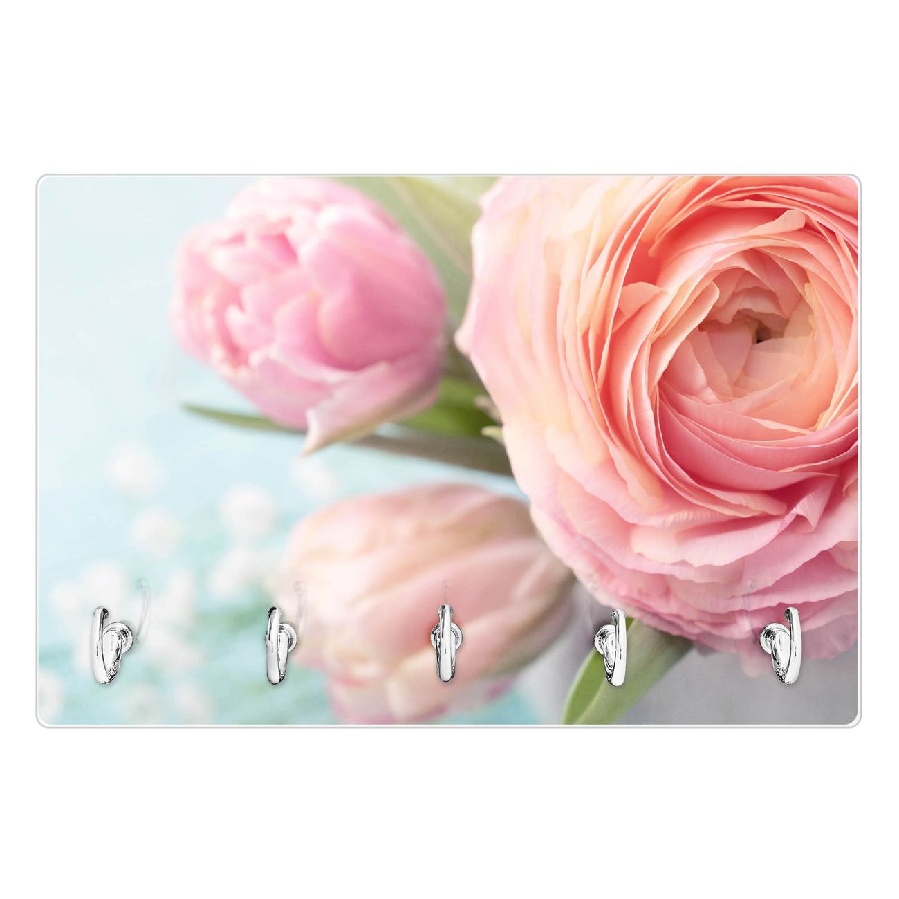 Glas Schlüsselbrett mit 5 Haken Rosa Tulpe
