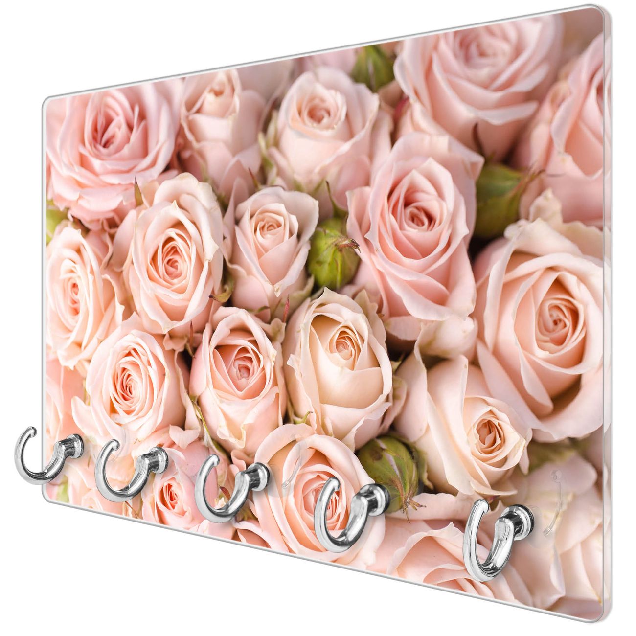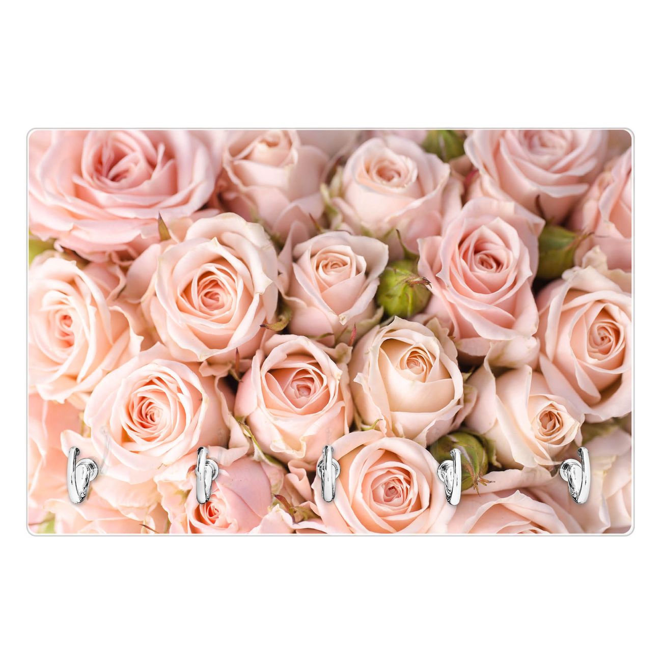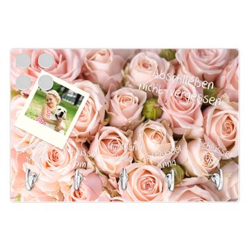 Glas Schlüsselbrett mit 5 Haken Rosenbouquet