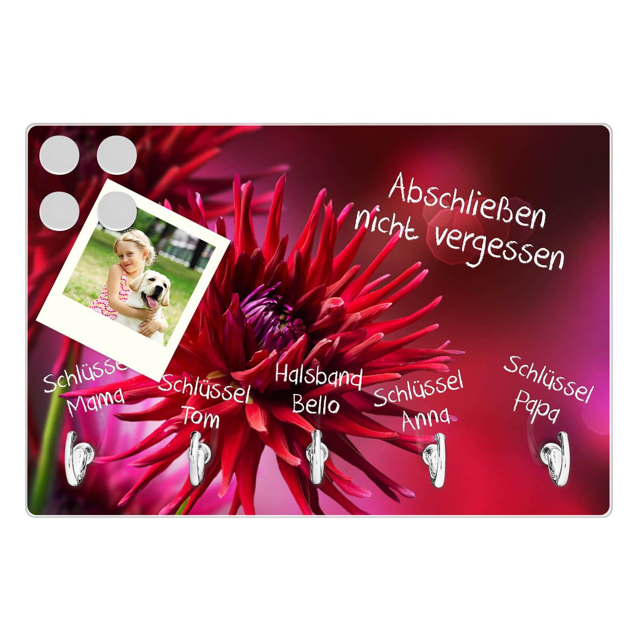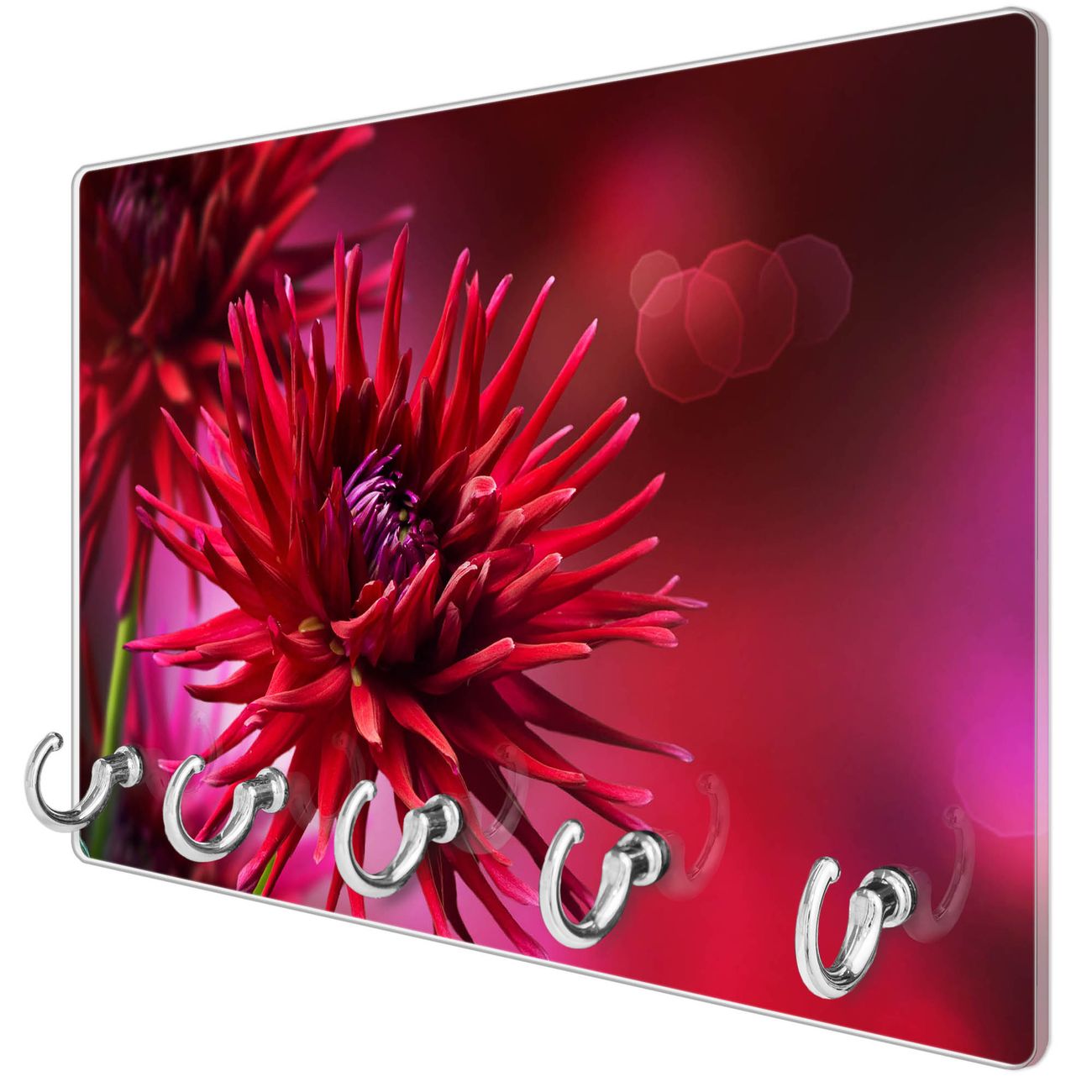 Glas Schlüsselbrett mit 5 Haken Rote Dahlien