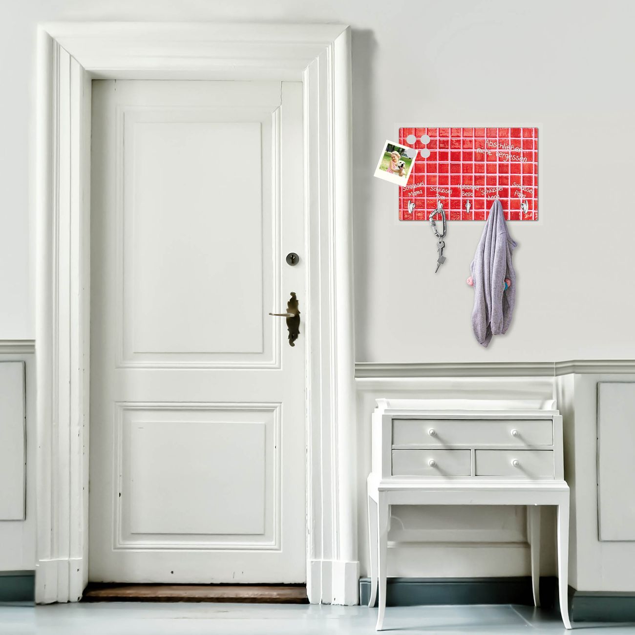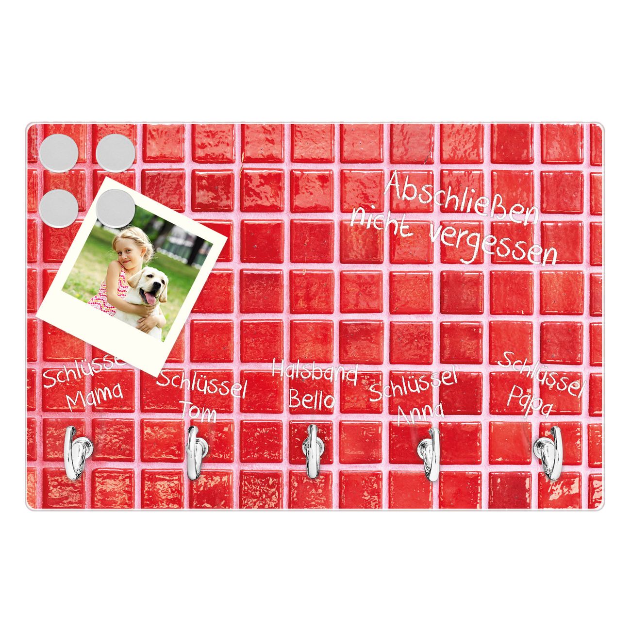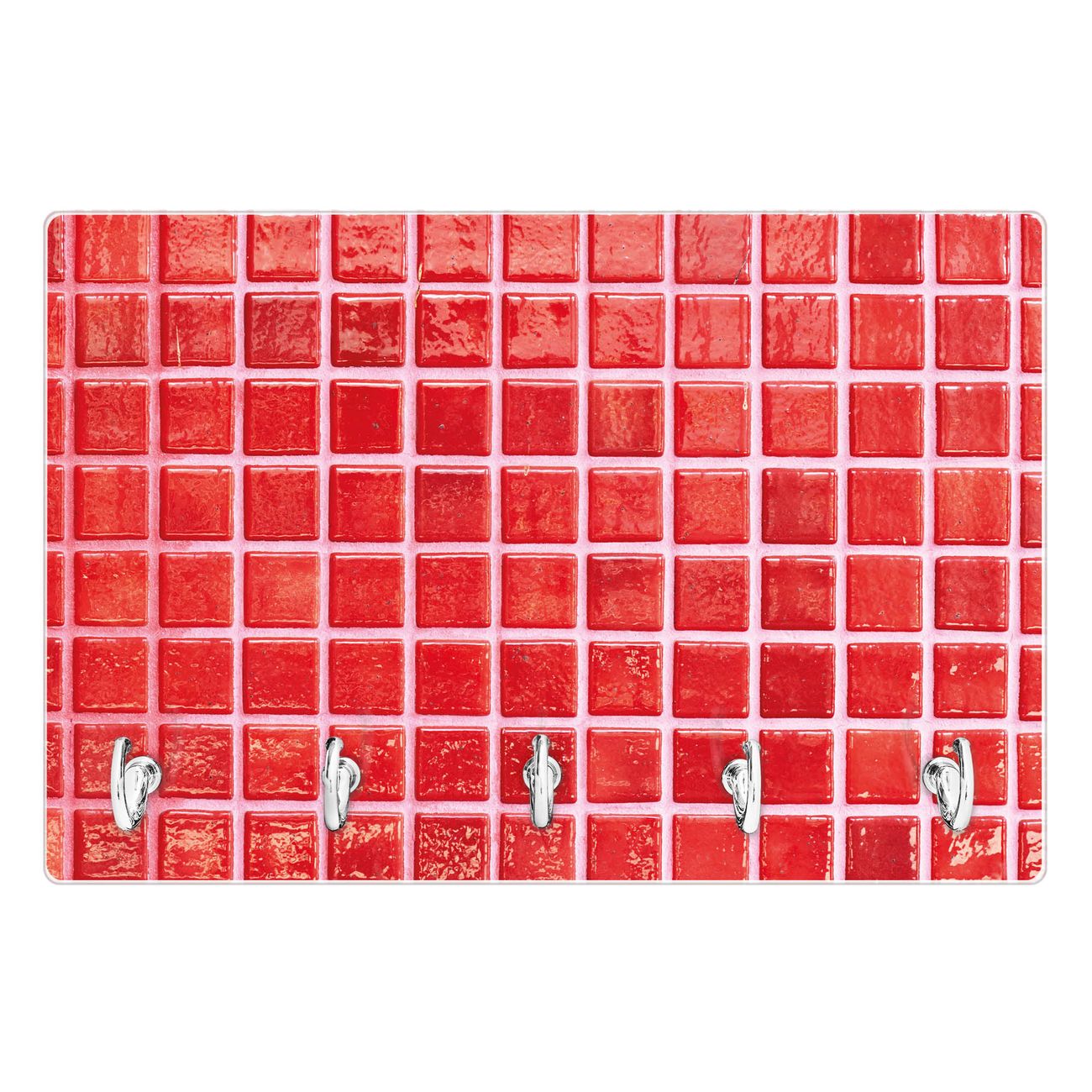 Glas Schlüsselbrett mit 5 Haken Rote Kacheln