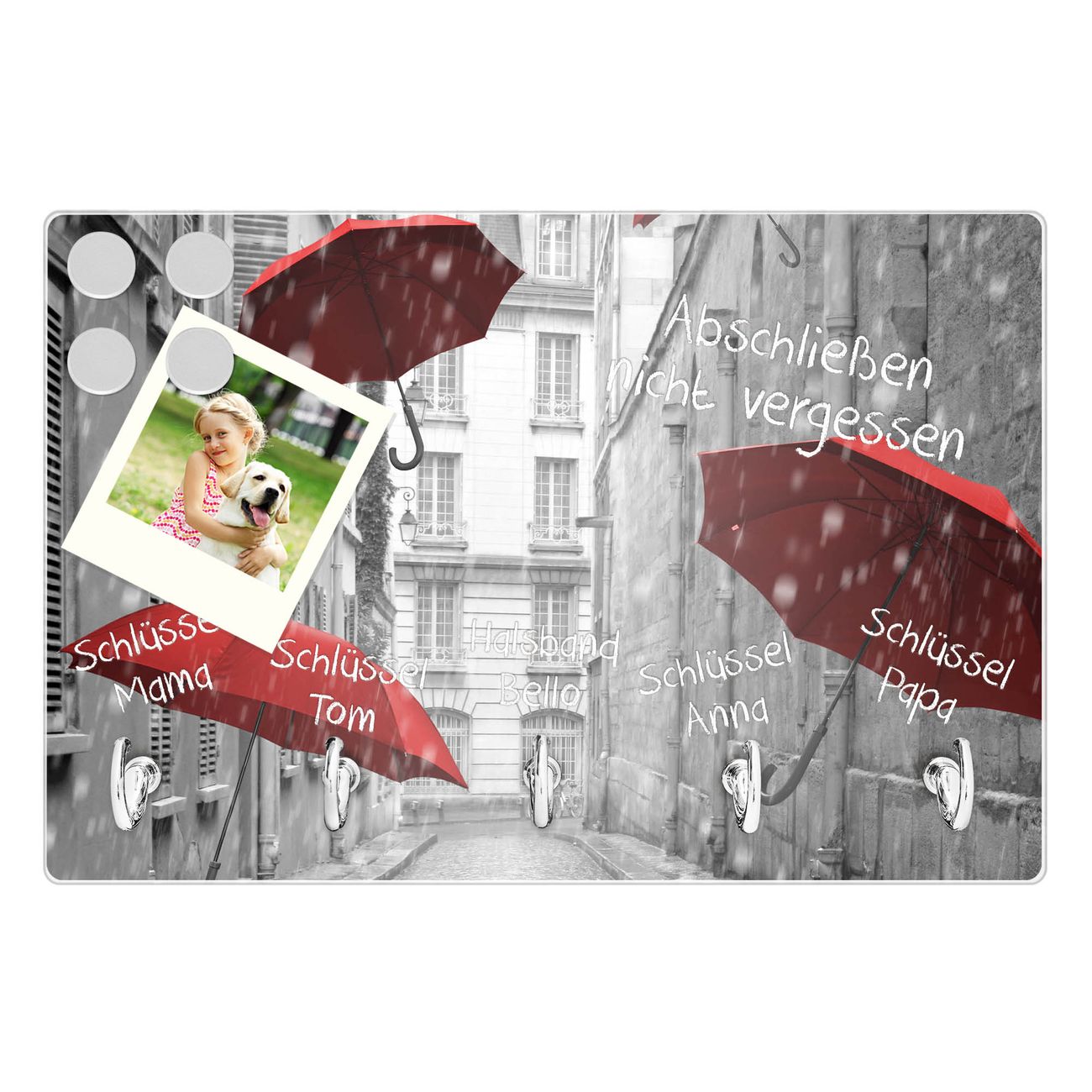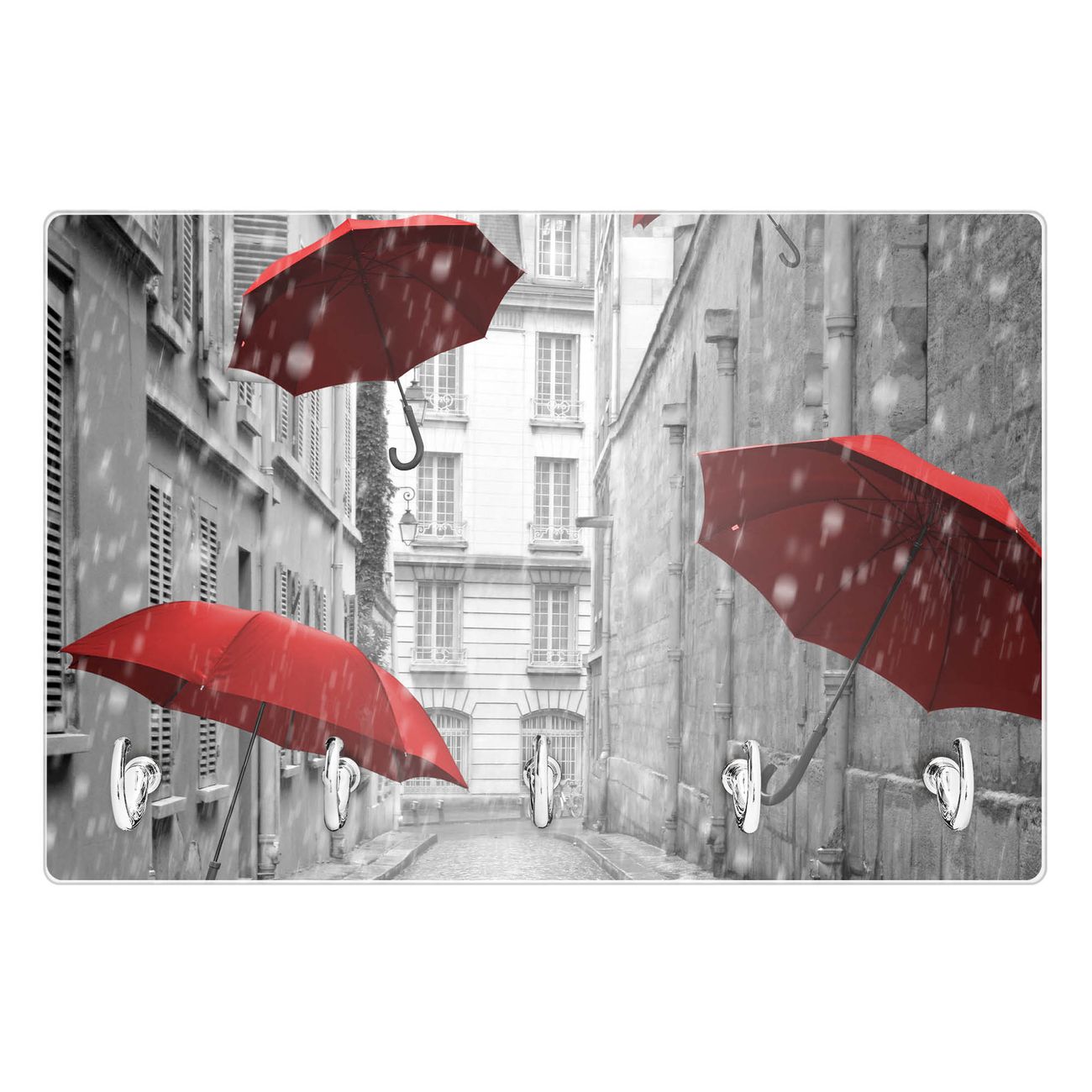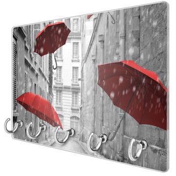 Glas Schlüsselbrett mit 5 Haken Rote Schirme