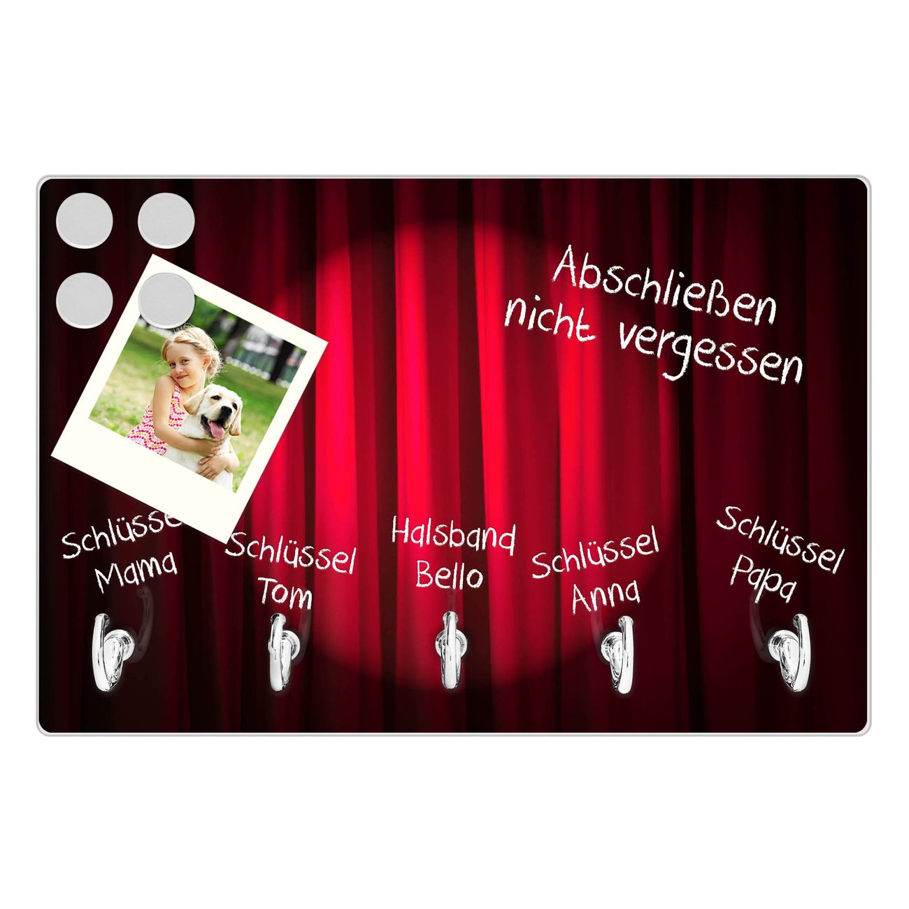 Glas Schlüsselbrett mit 5 Haken Roter Vorhang