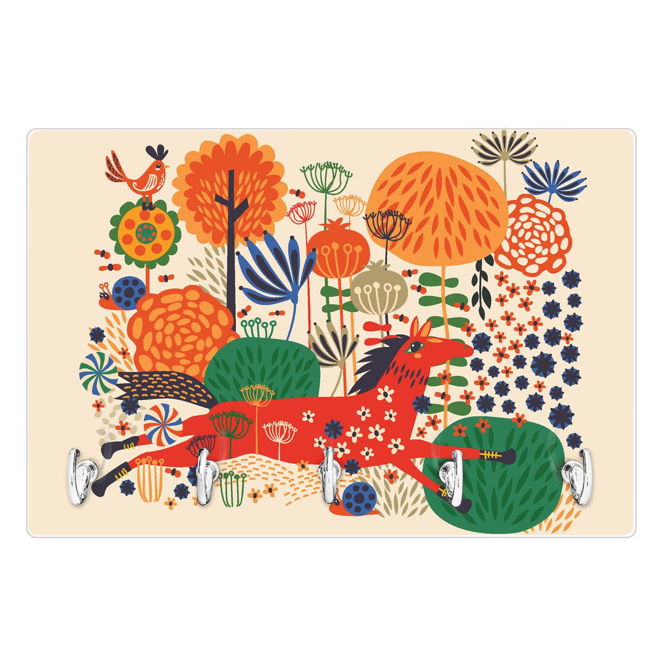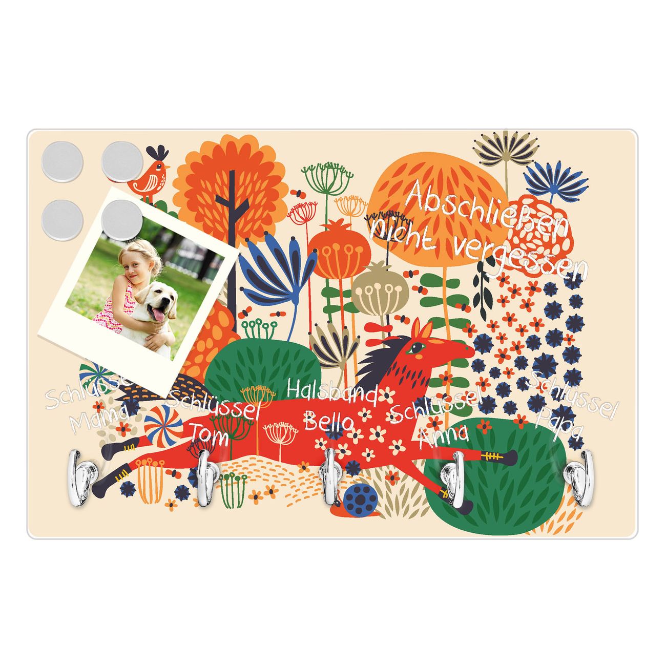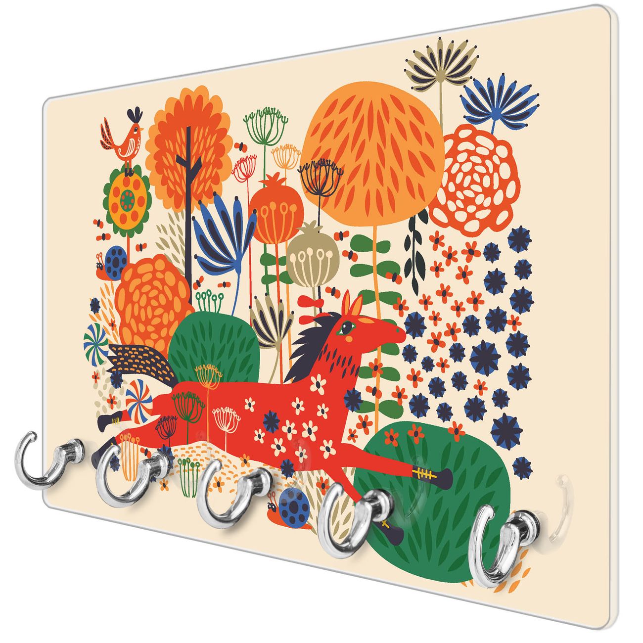 Glas Schlüsselbrett mit 5 Haken Rotes Pferd