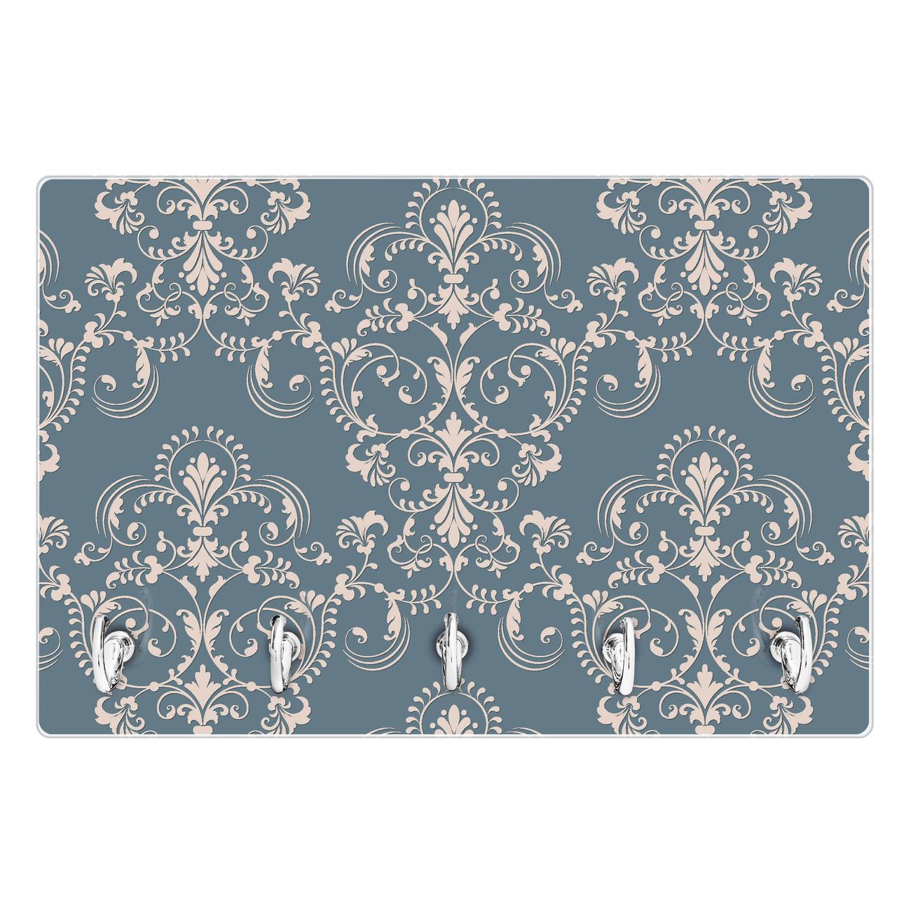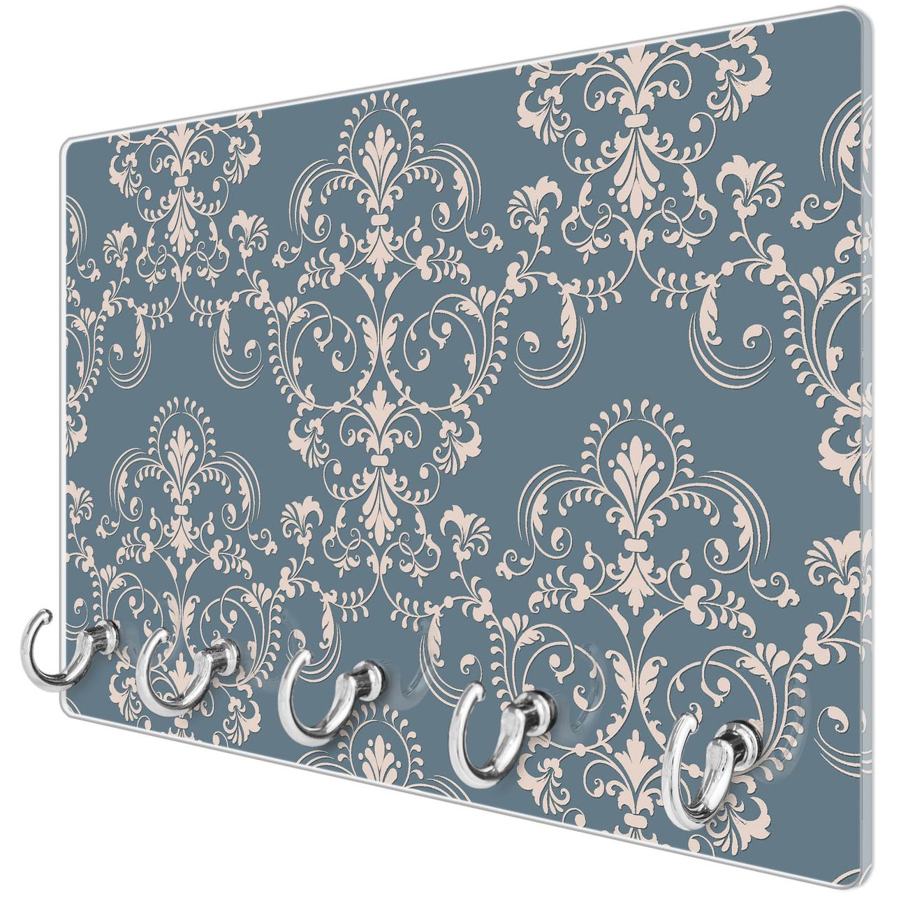 Glas Schlüsselbrett mit 5 Haken Royal Creme Blau