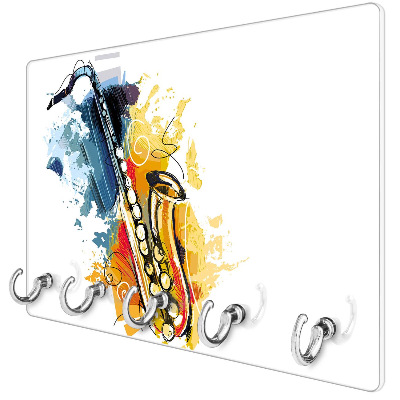 Glas Schlüsselbrett mit 5 Haken Saxophon