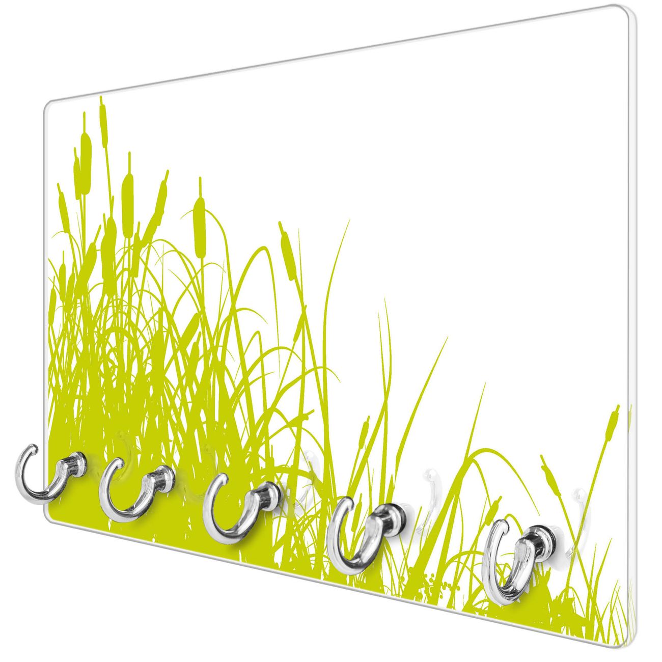 Glas Schlüsselbrett mit 5 Haken Schilf
