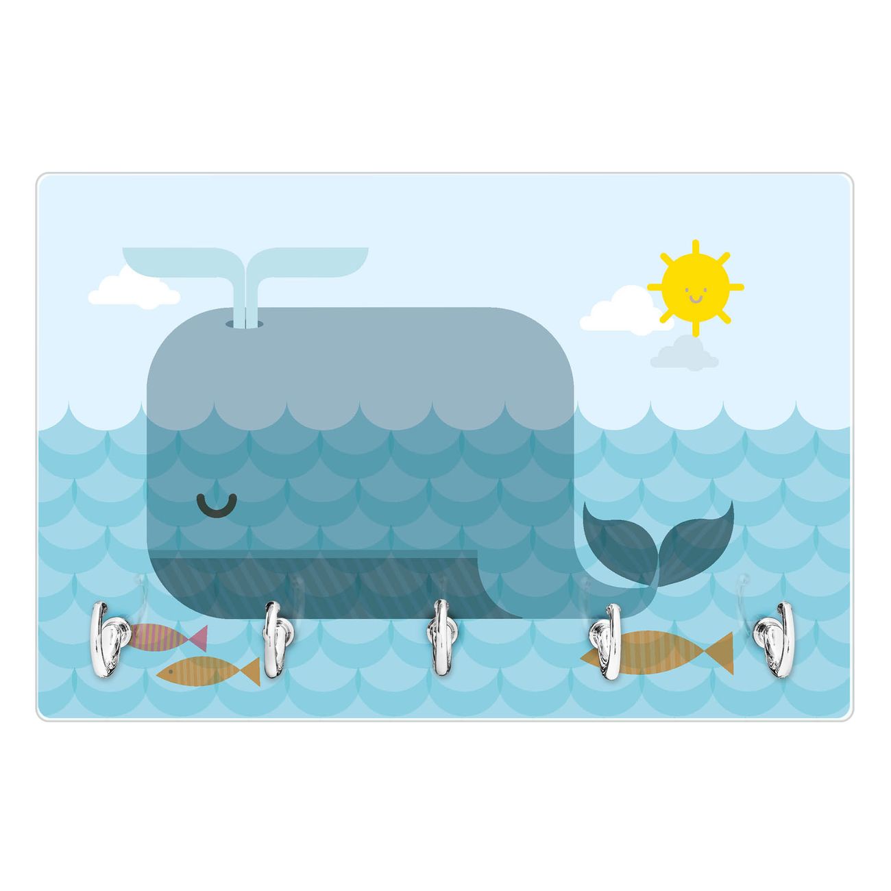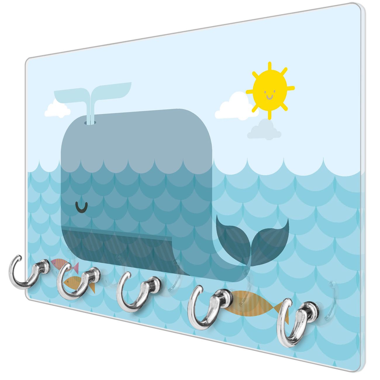 Glas Schlüsselbrett mit 5 Haken Schlafender Wal