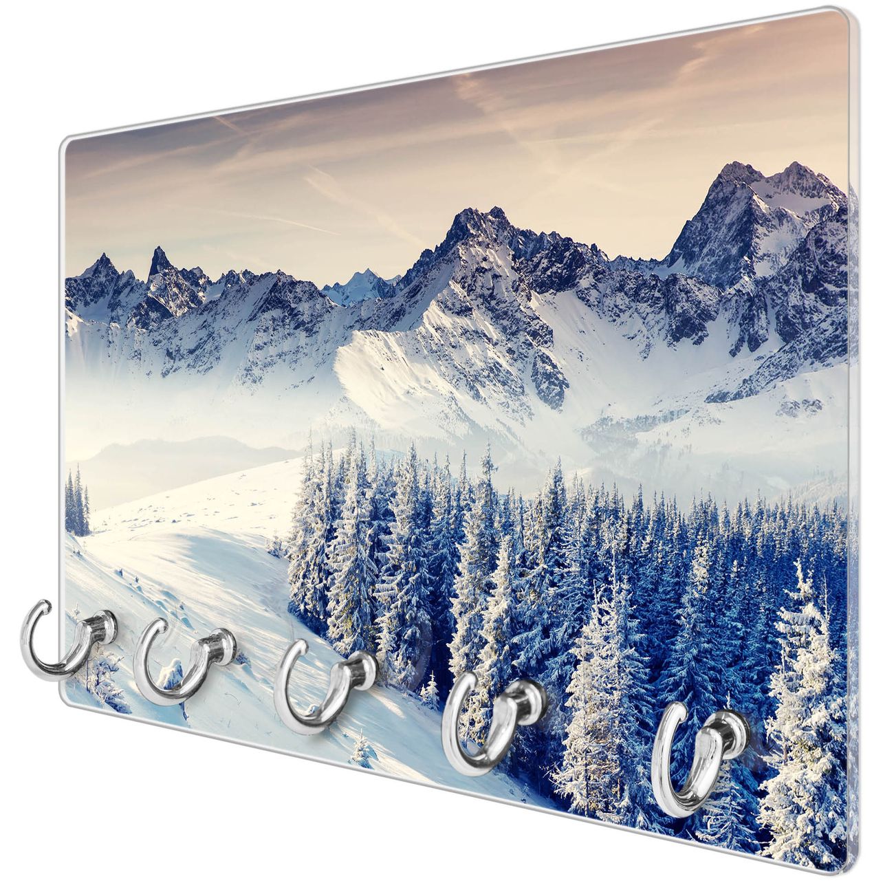 Glas Schlüsselbrett mit 5 Haken Schneebedeckte Berge