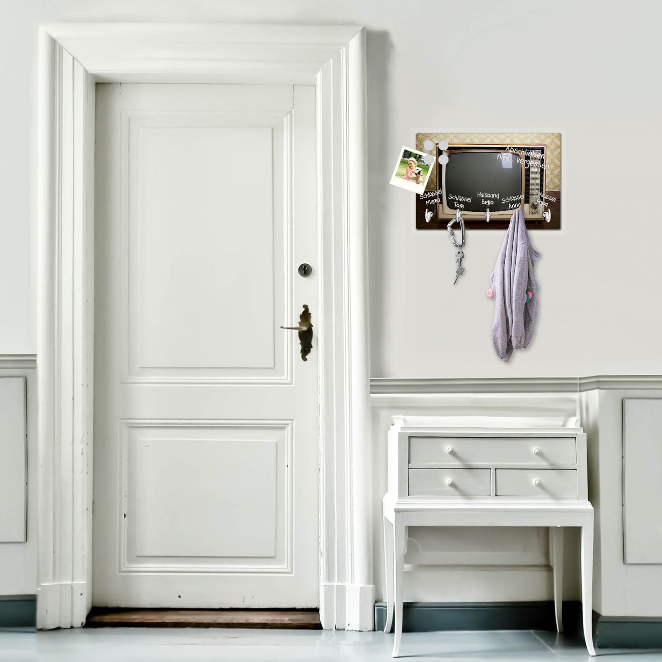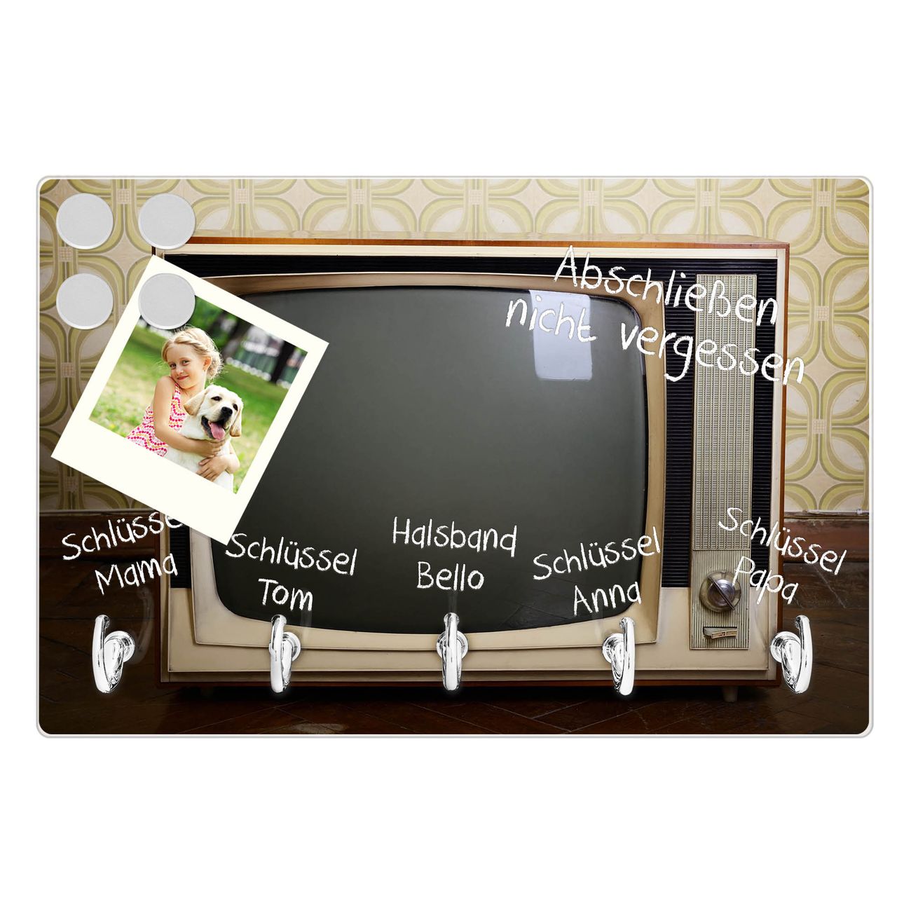 Glas Schlüsselbrett mit 5 Haken Schwarzweiß TV