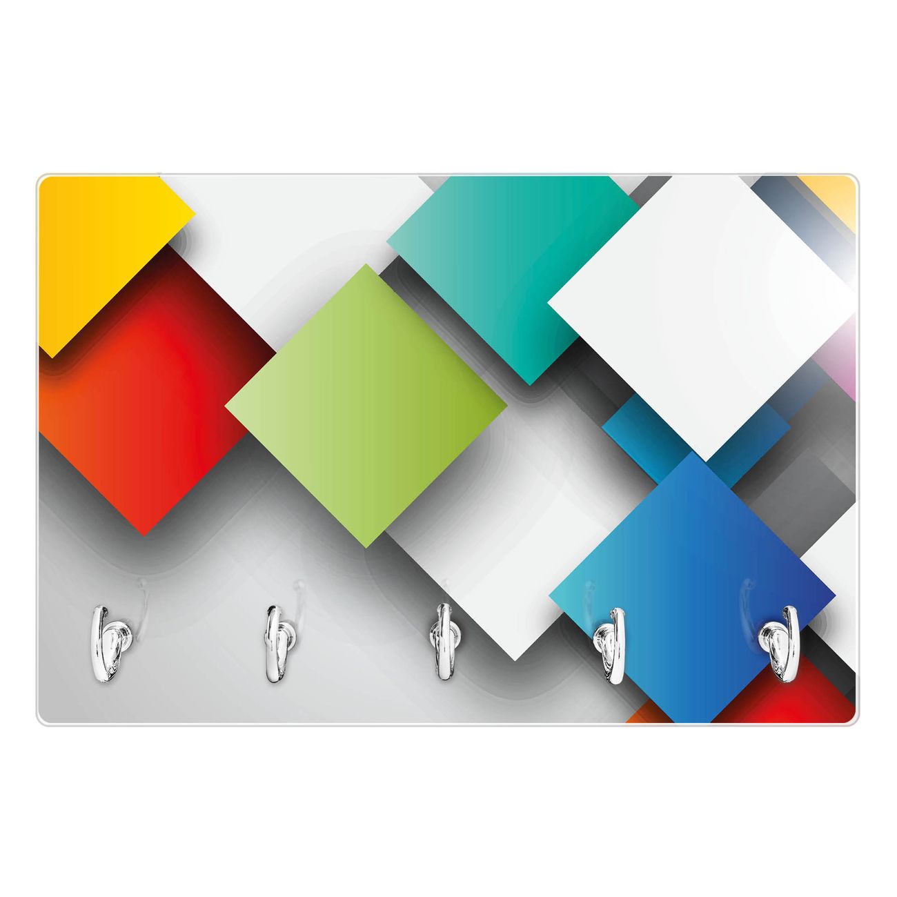 Glas Schlüsselbrett mit 5 Haken Schwebende Quadrate